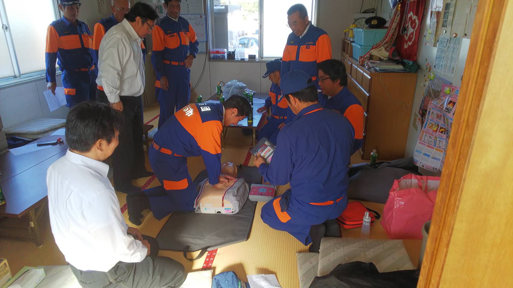 午後から、秋の火災予防運動大鐘町のビラ配り、応急手当指導員再講習を行いました。