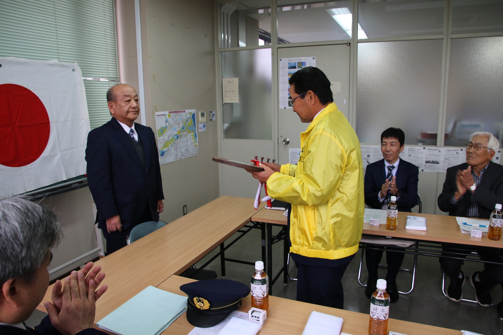 中川顧問より、今回の青パト運転者である土木委員へ鍵の贈呈がありました。