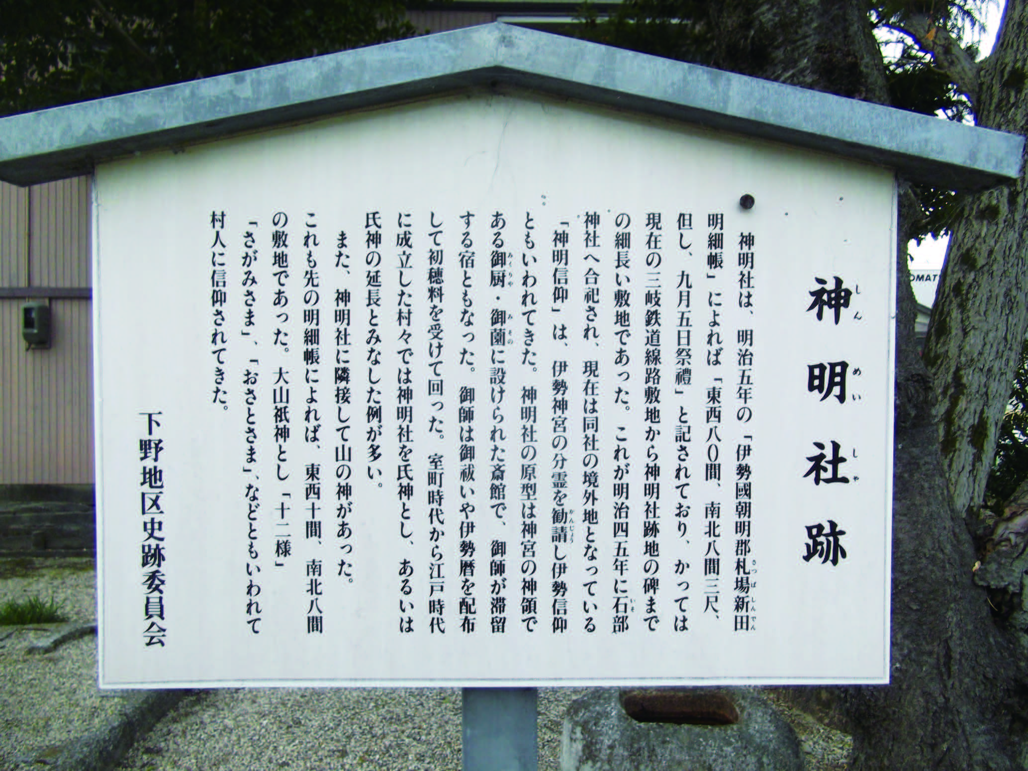 この神明社について、明治5年(1872)の『伊勢国朝明郡札場新田明細帳』に、「東西八〇間、南北八間三尺、但シ、九月五日祭禮」と記されている。