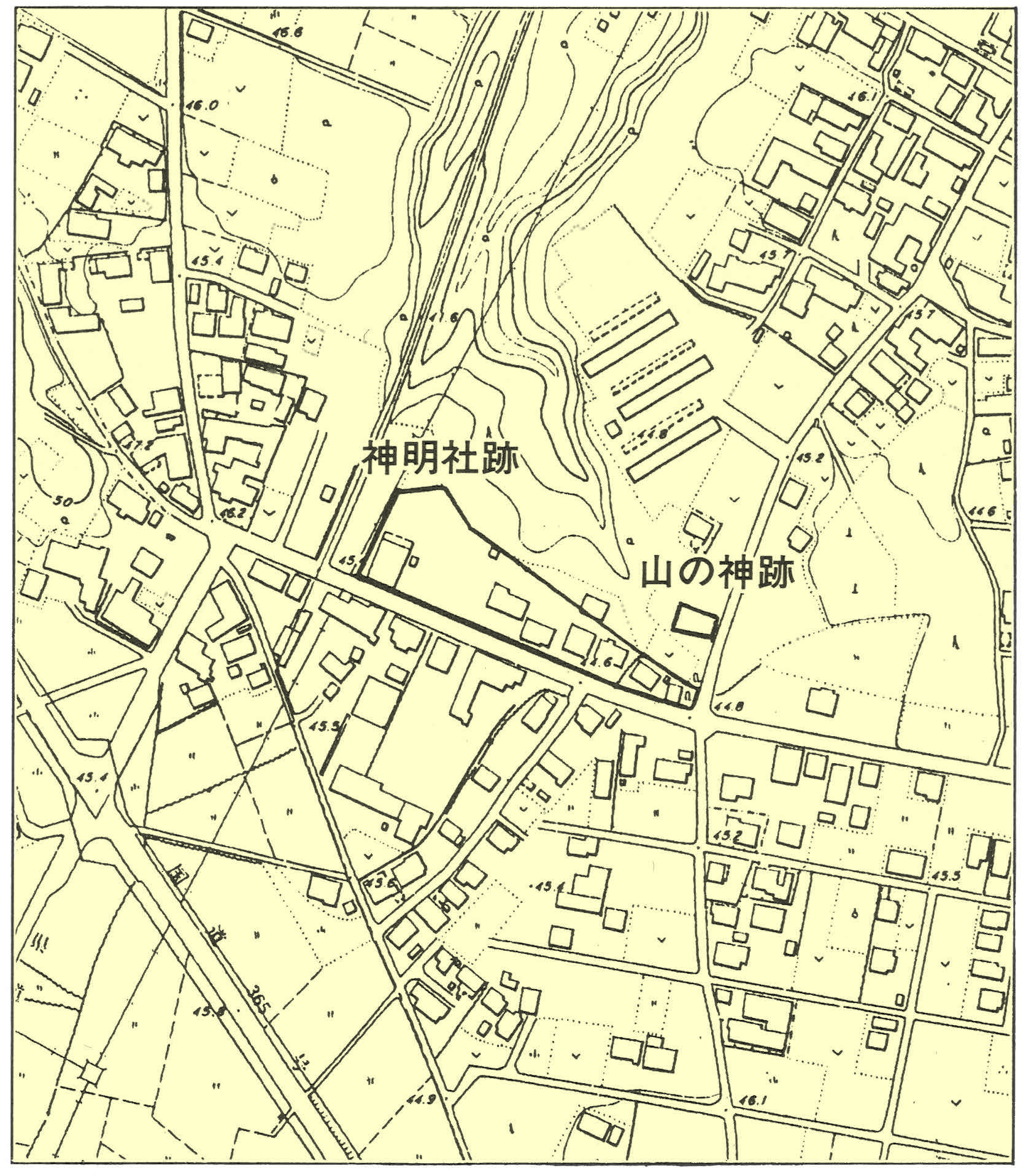 また、神明社に隣接して山の神があった。これも先の明細帳によれば、「東西十間、