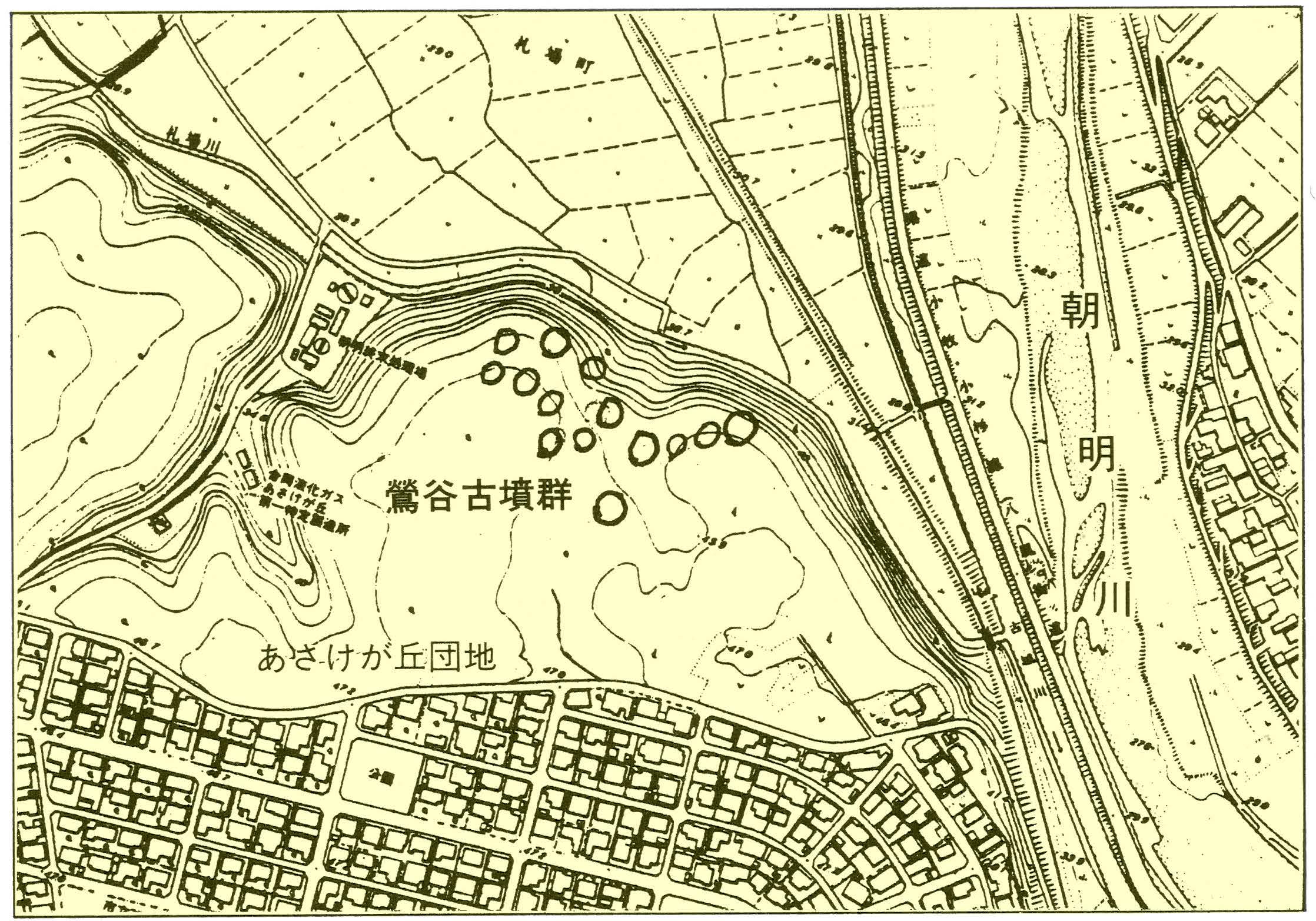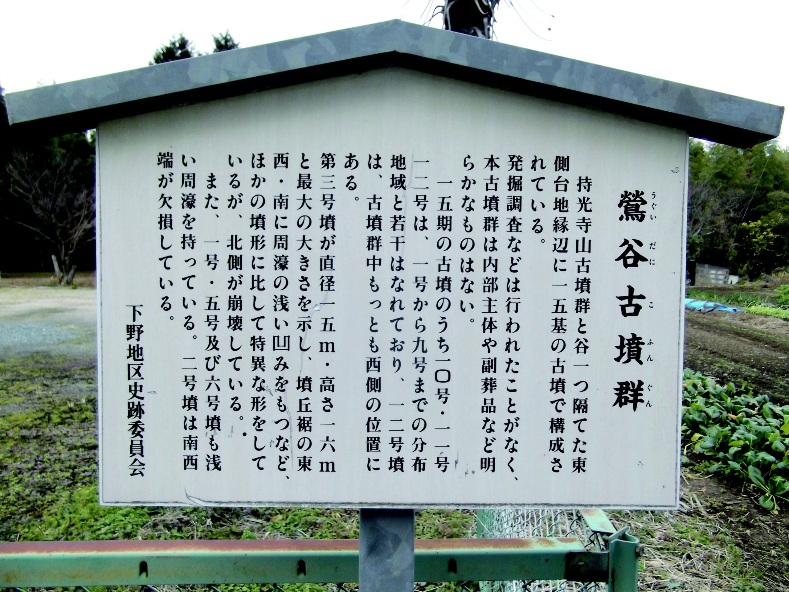 鶯谷古墳群は、持光寺山古墳群と谷一つ隔てた東側台地縁辺に15基の古墳で構成されている。