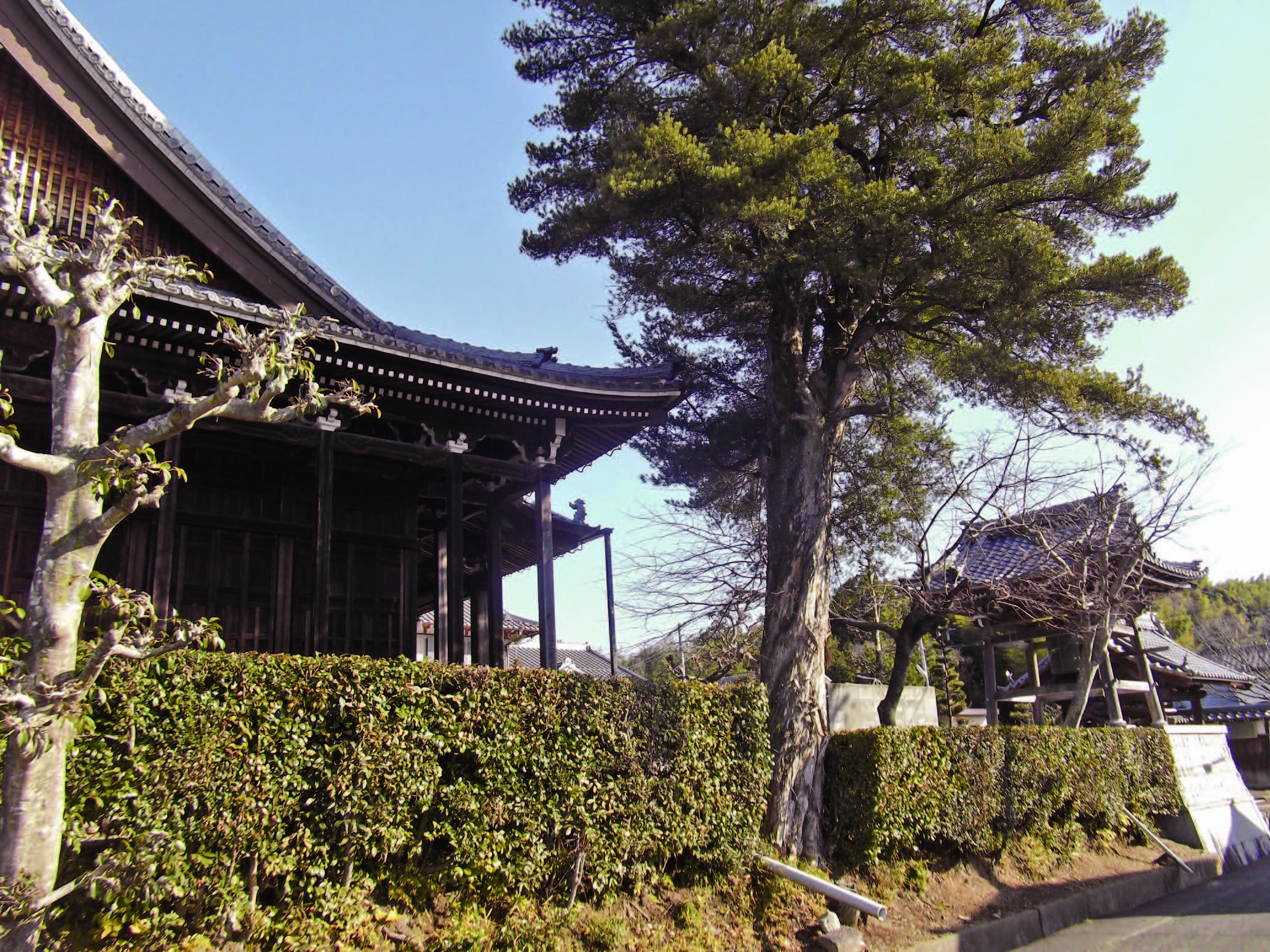 安乗寺の山門は、四脚門の形式で、軒は二軒繁垂木、現在は桟瓦葺だが、もとは檜皮葺であったと思われる。
