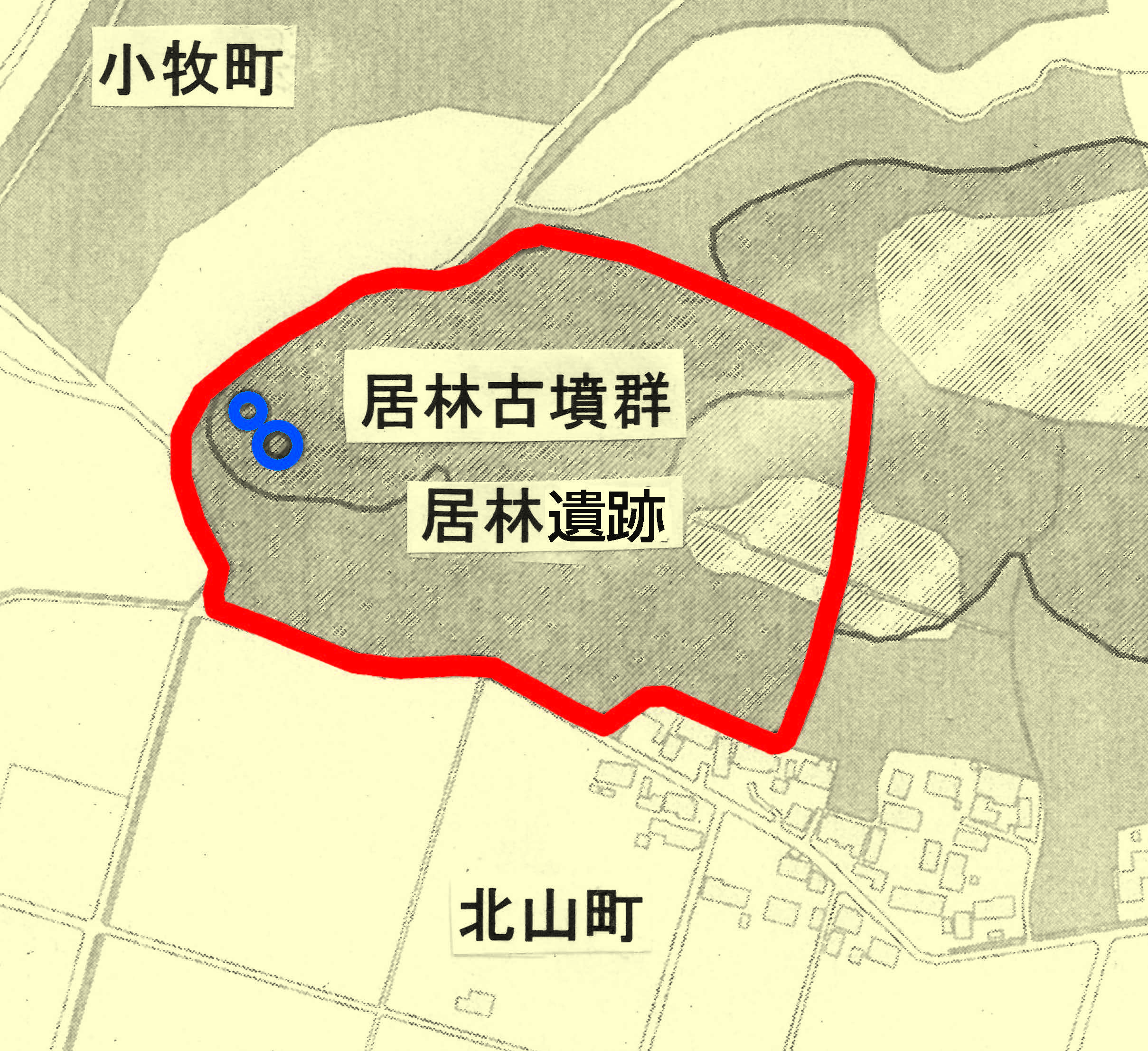 また、以前の調査で、居林遺跡内で確認されている居林古墳群は、朝明川の左岸に連なる丘陵の西端、南面する斜面に大小2基が並列して所在している。