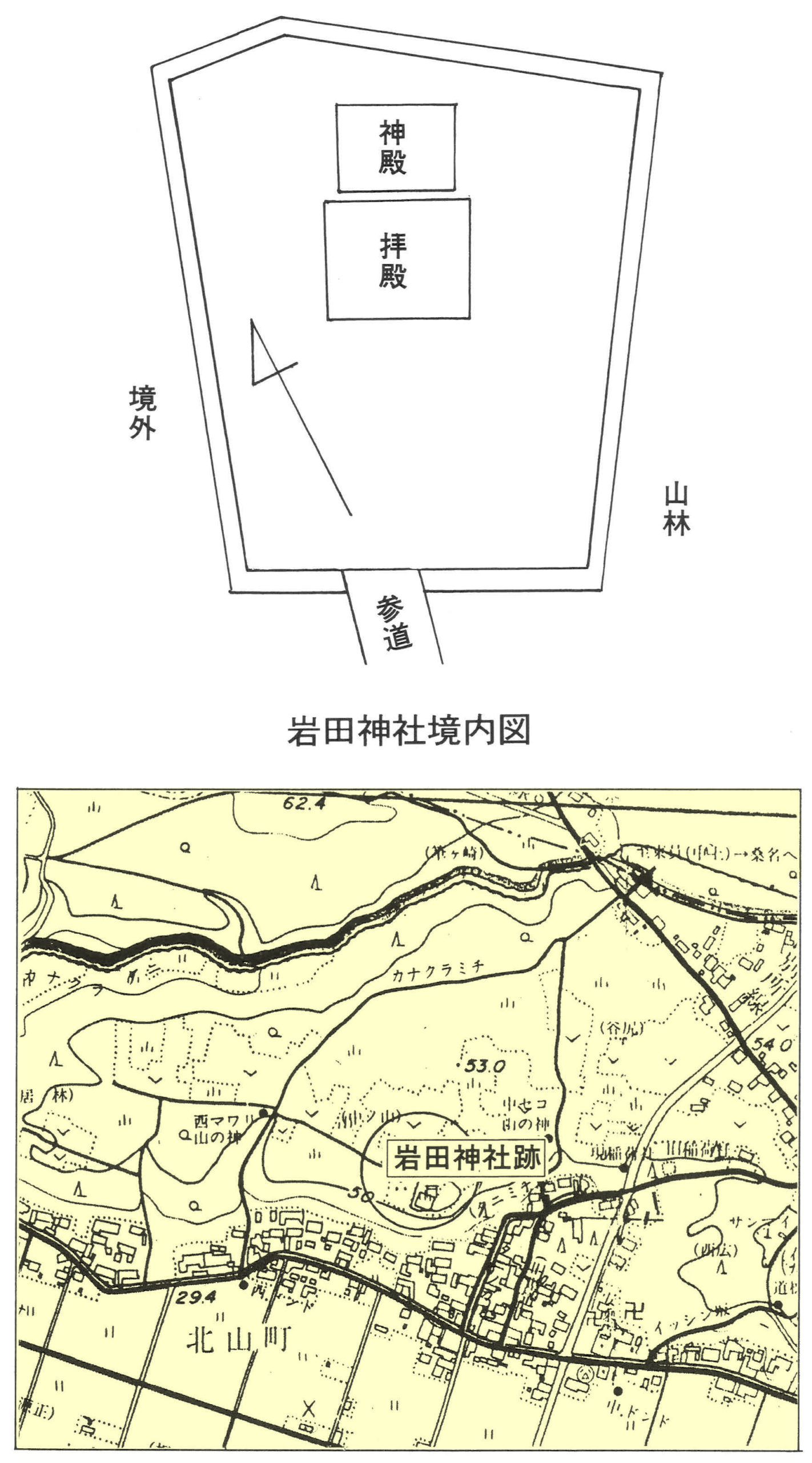 その後、石部神社に合祀されて、現在は北山町北部の高台に「御厨岩田神社跡」と彫られた石柱が残るのみである。
