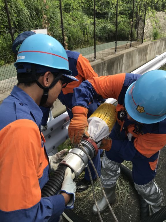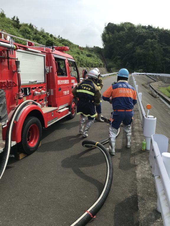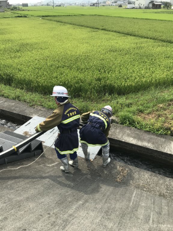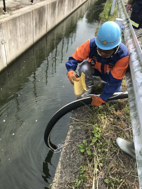 今回の訓練も前回と同様に北山町の用水路にて放水訓練を行いました。
