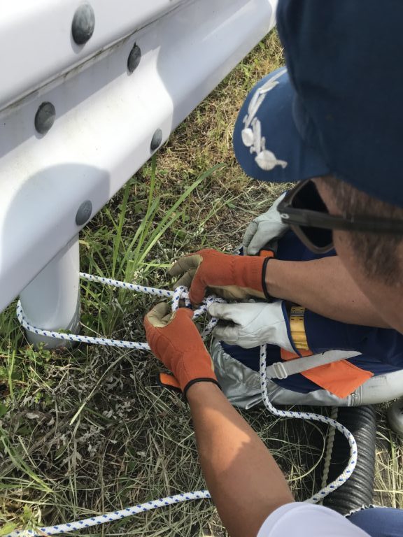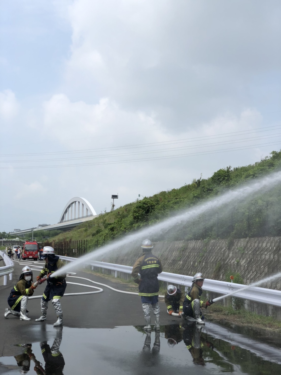 遠距離を想定しているので、初めにホースを3本使用し放水を行い、続いて2線目もホースを3本使用し、同時放水を行いました。遠距離と2線放水している為、放水圧を上げると吸水が追いつかなくなるので、急遽吸管も1つ増やして吸水を行い放水圧を維持上昇できるようにしました。
