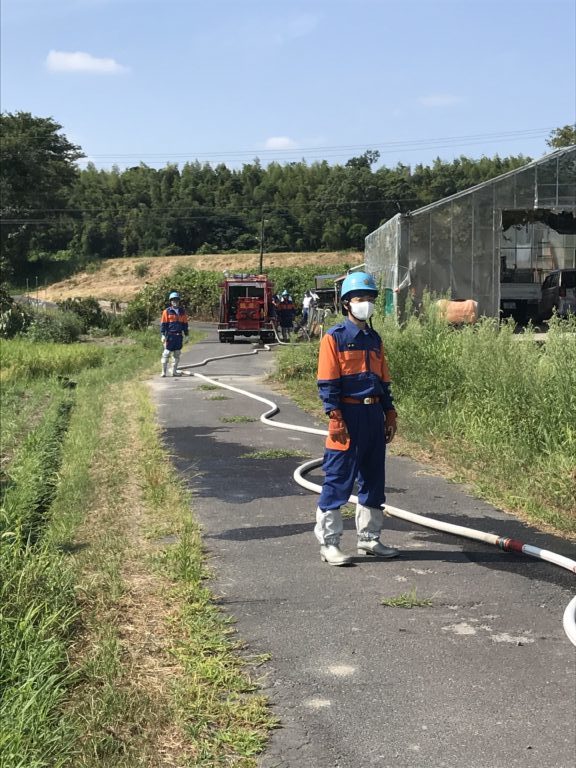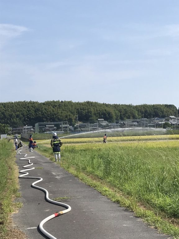 今回の訓練では各田んぼまでのホース延長の際に目測と本数が合わず、ホースを追加する為、何度か消防車へ取りに戻ったり、吸水の際に真空が中々かからず、原因を把握するまでに手間取るなど課題が残る訓練でした。