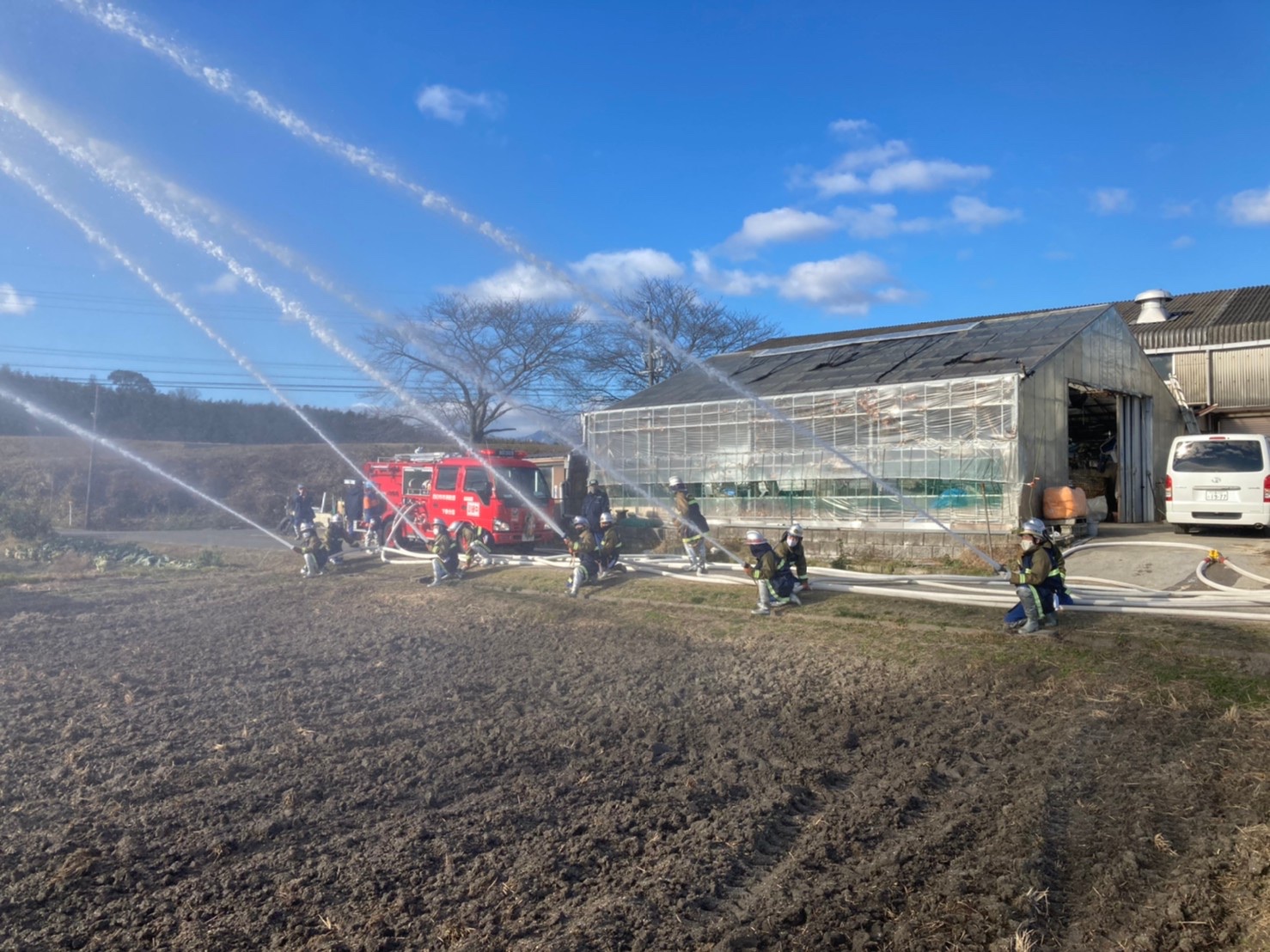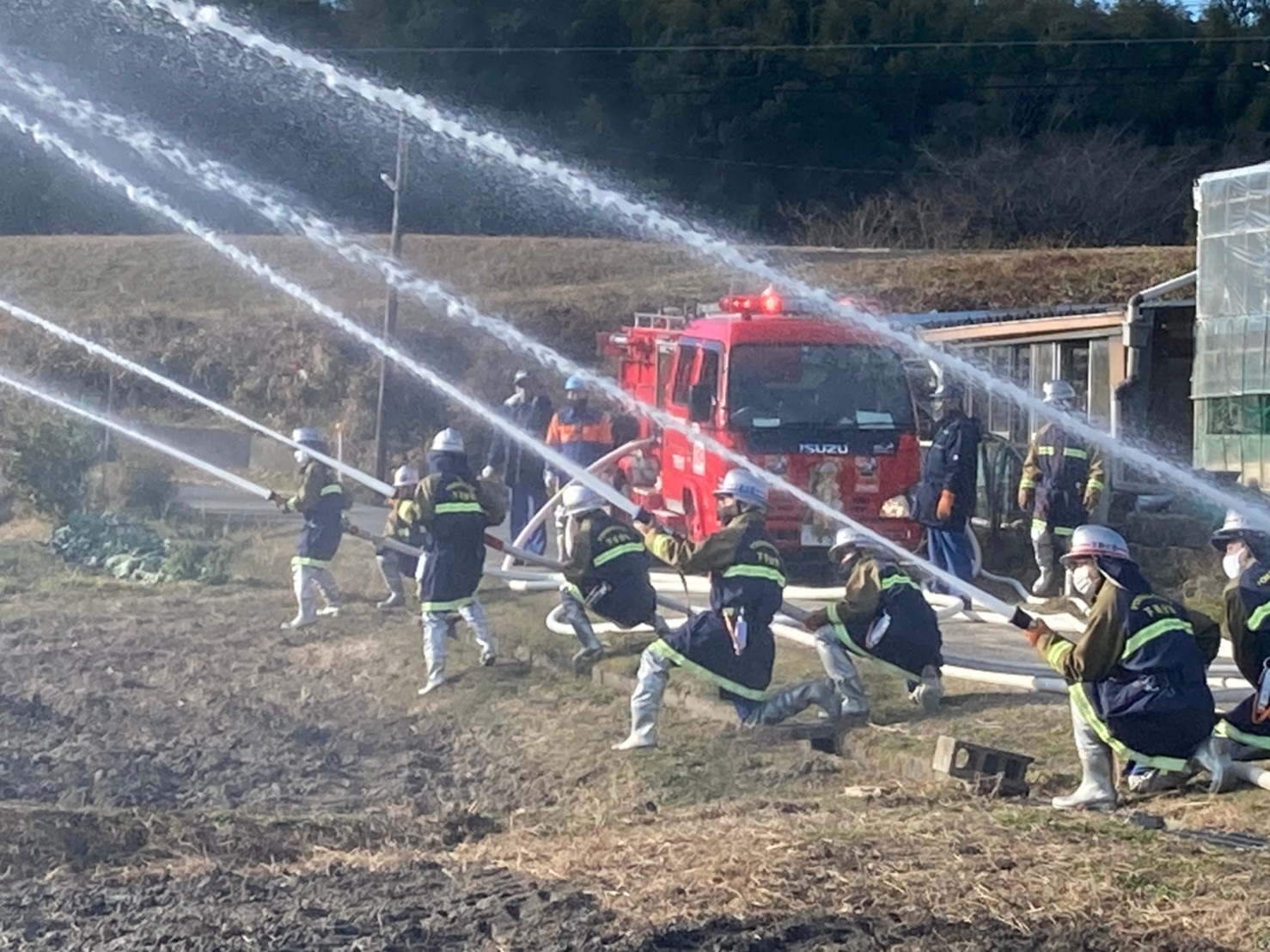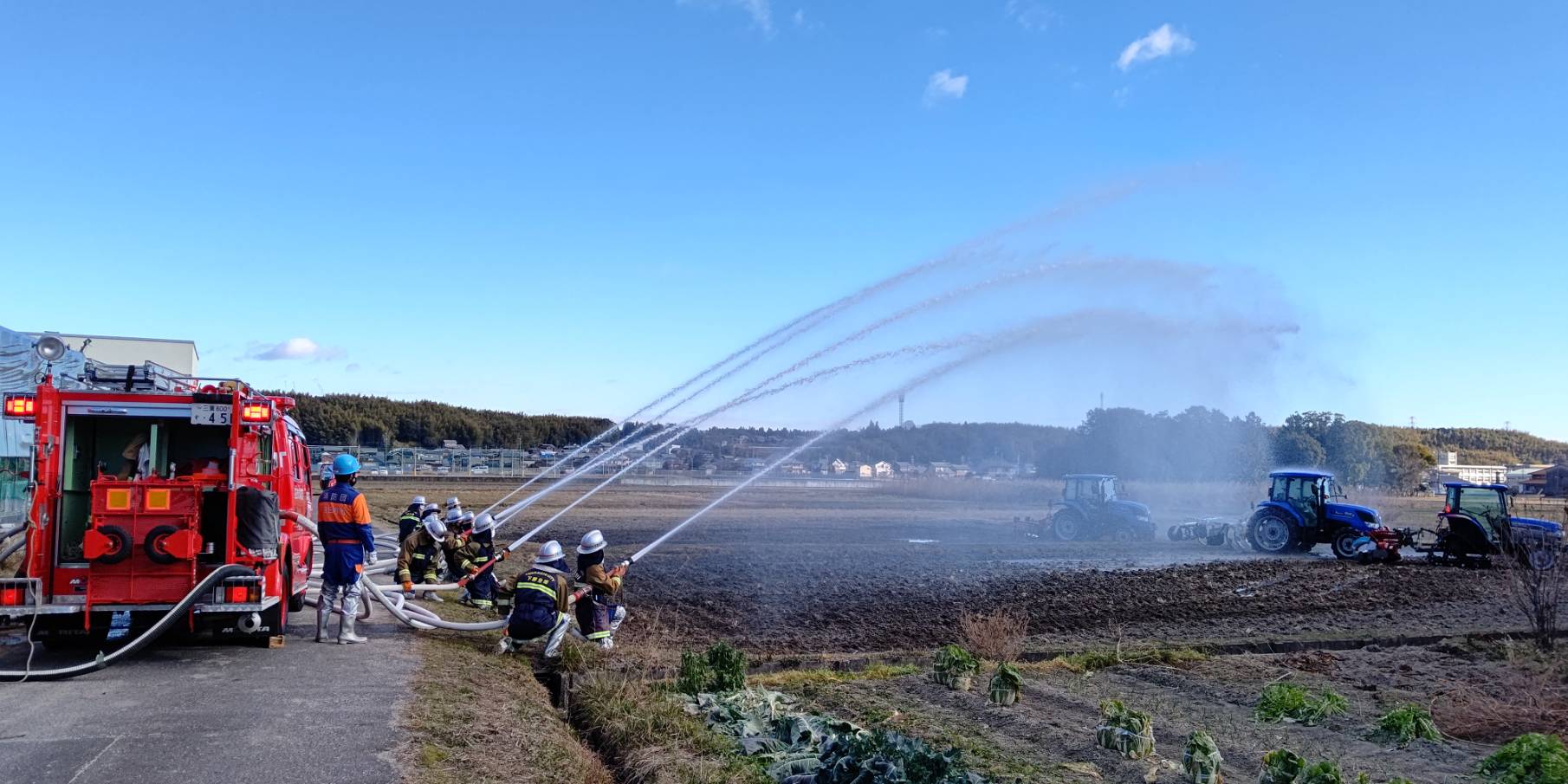 今年初めての訓練は岩田板金さんの田んぼをお借りして送水訓練を行いました。
