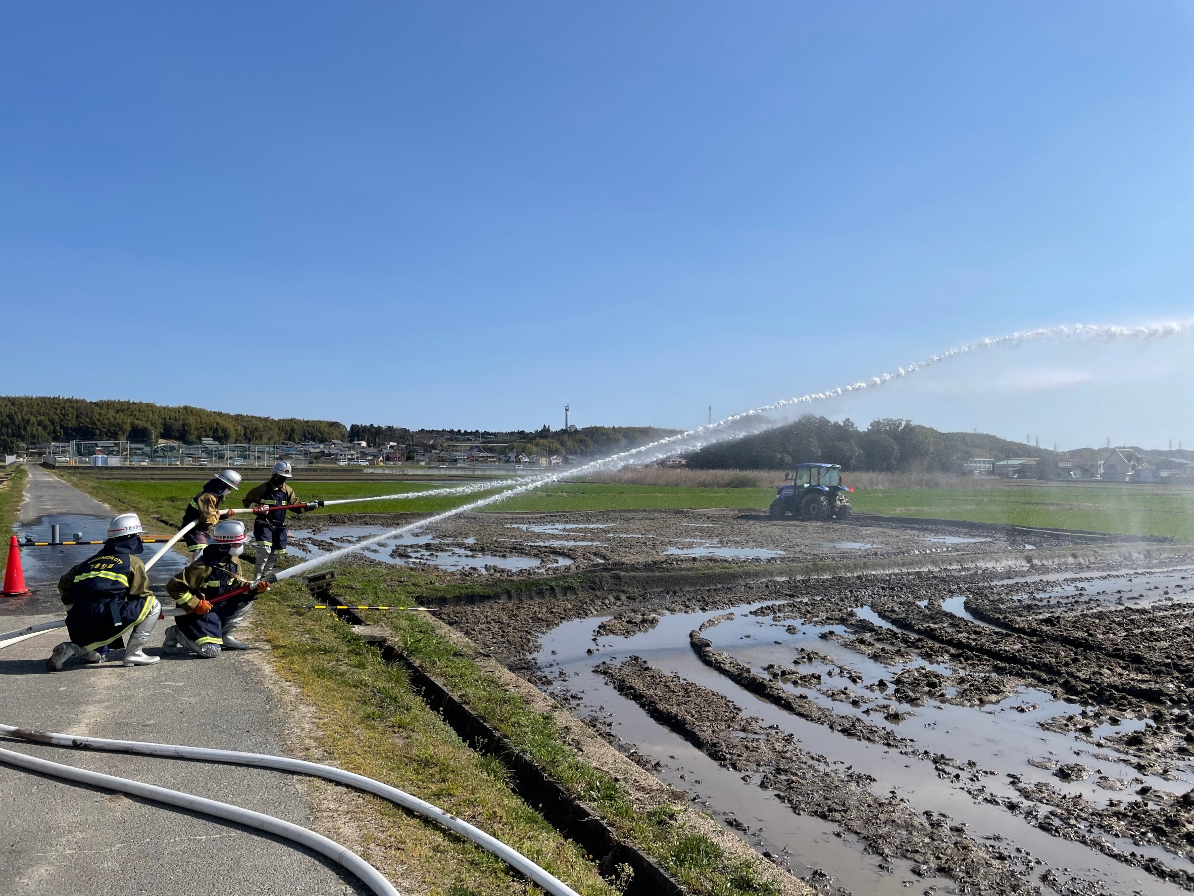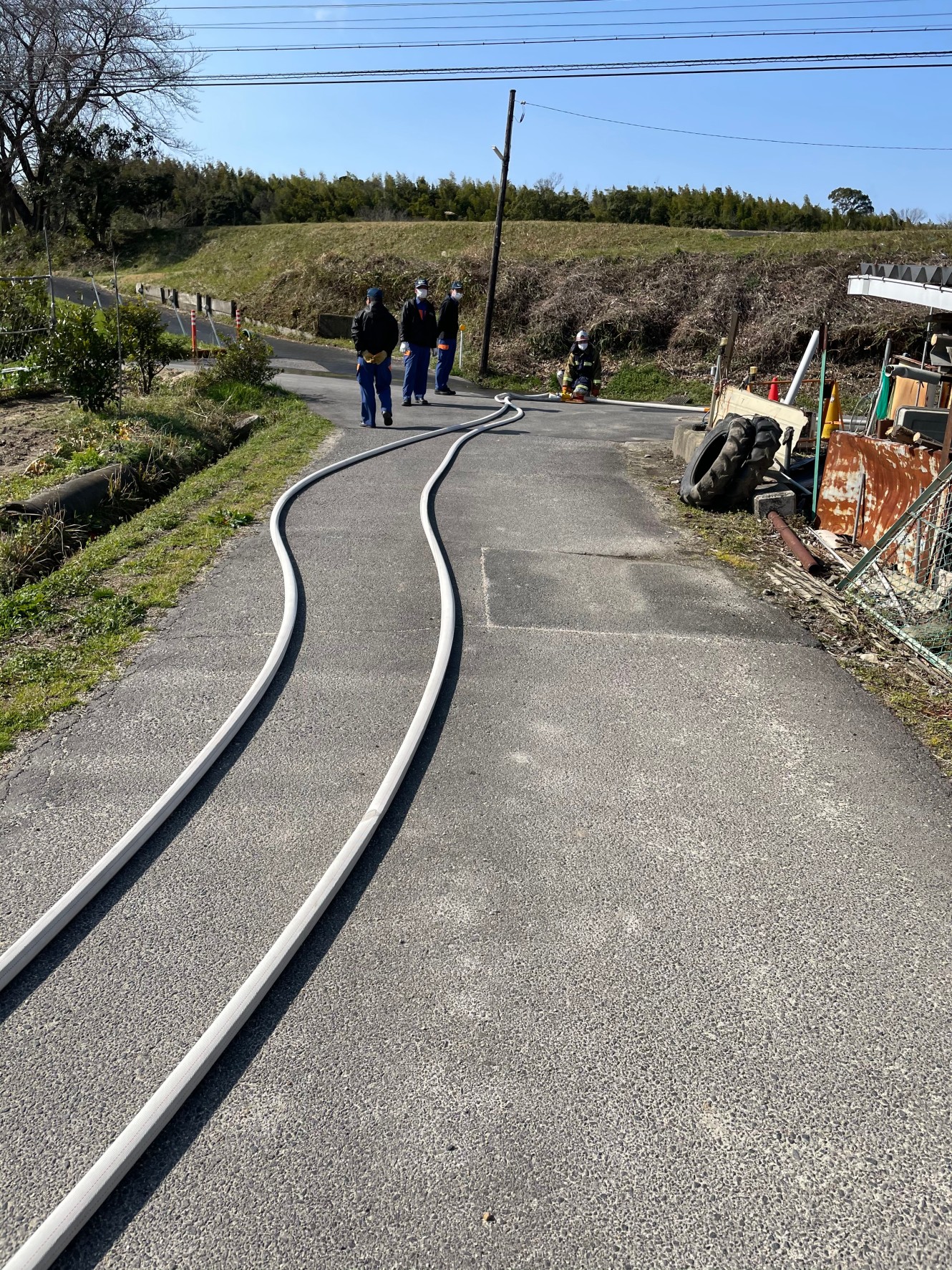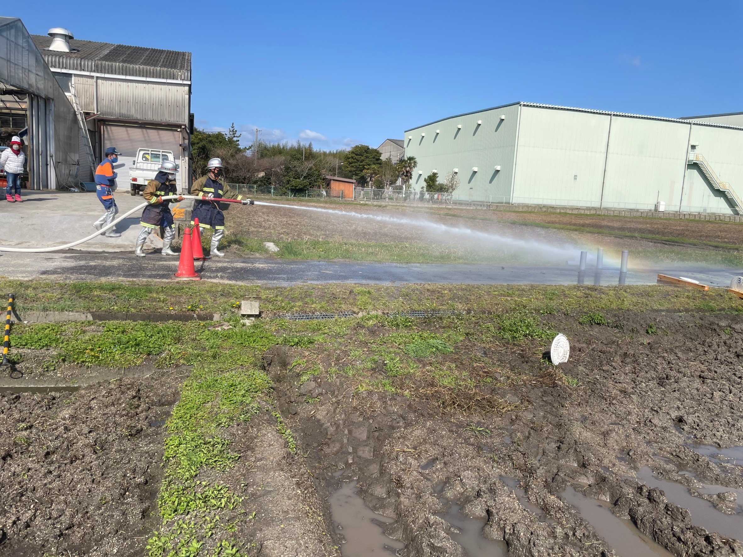 今年度最後の訓練は岩田板金さんの倉庫と田んぼを借りての放水訓練を行いました。今回は毎年夏に行われている操法競技大会のような形で放水を行いました。