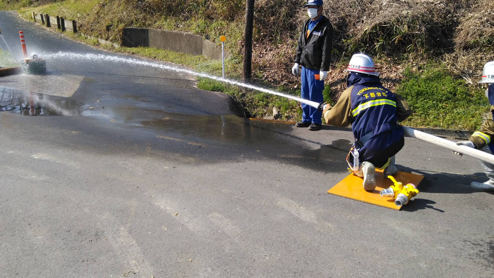強風で放水が流され、上手く桶に水が入らなかったり的にも当たらず大変でしたが、火災現場では様々な状況があるので、今年度の最後を締め括る良い訓練が出来たと思います。