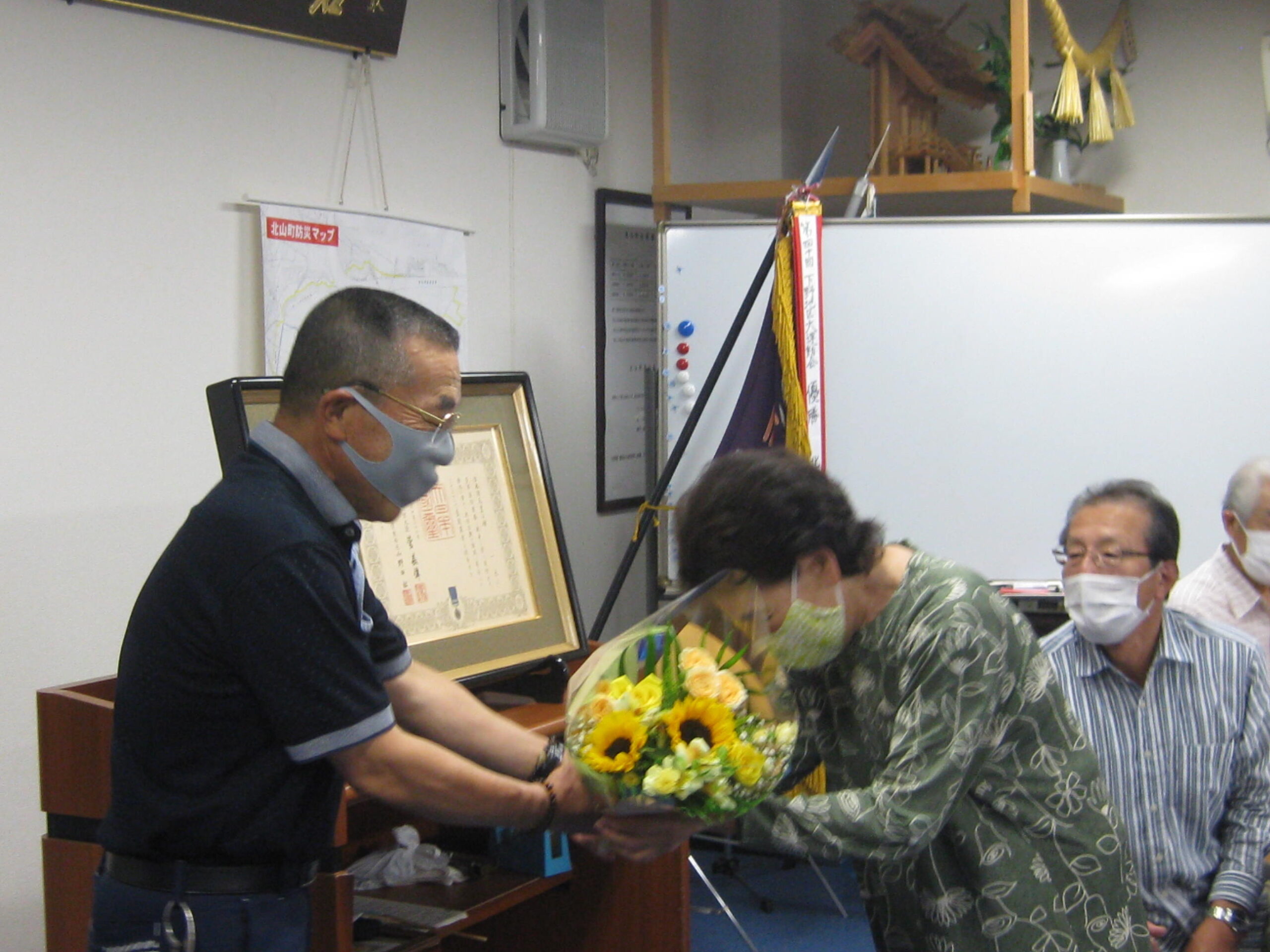 自治会としても記念品と花束を贈り、お祝いさせていただきました。。