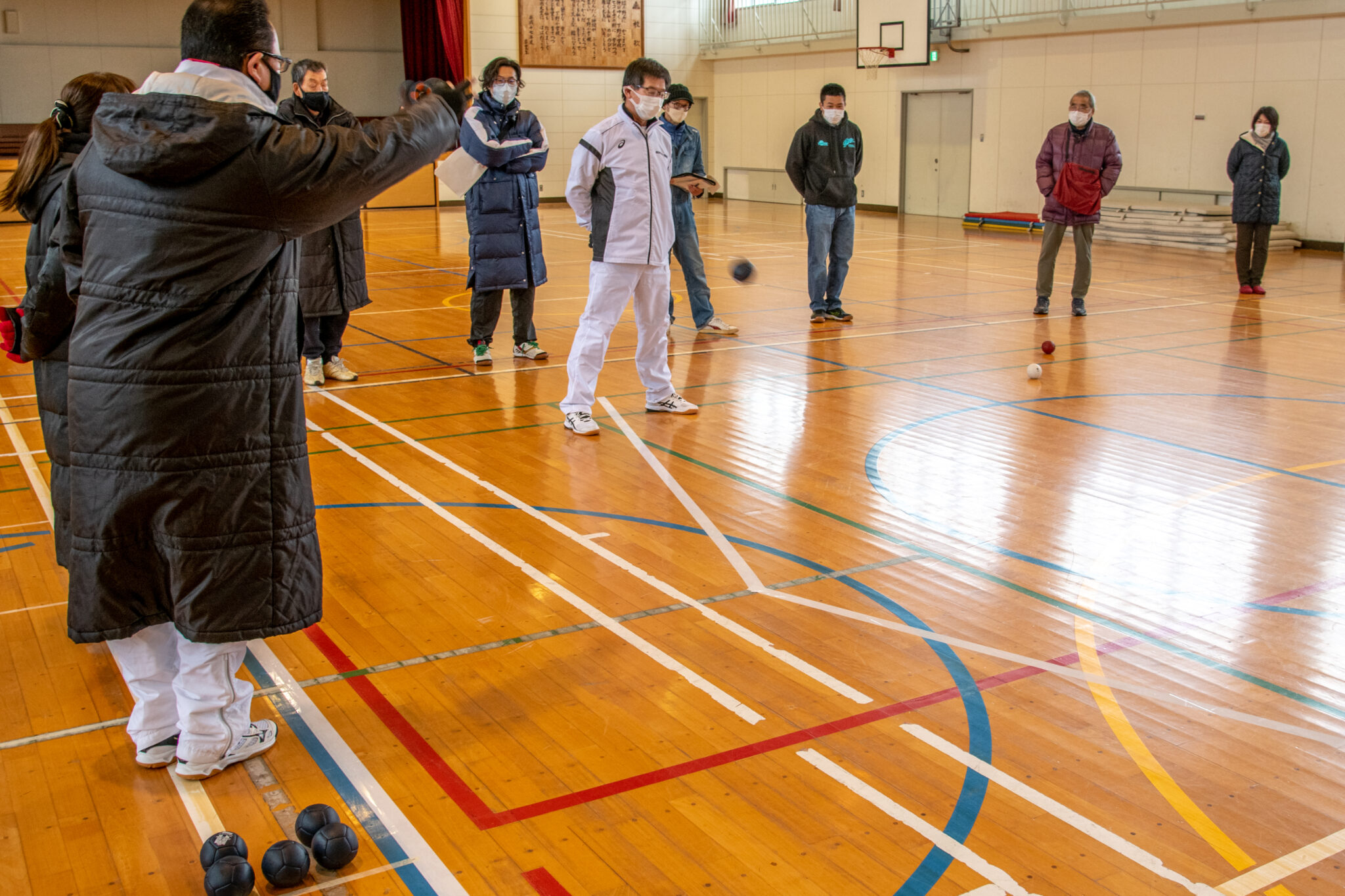 令和4年1月23日体育委員向けボッチャ講習会をコロナ渦の影響が懸念されましたが体温計測、健康状態確認記録および手消毒、マスク着用、3蜜すべての防止、飲食禁止、私語の抑制などの感染対策を万全に行い開催しました。競技ルール、協議内容説明、指導は下野地区四日市市スポーツ推進員が担当し、競技説明30分、デモンストレーション30分で実施いたました。デモンストレーションは体育委員役員が担当し各体育委員は見学のみとしましたが体育委員各位からは活発な意見質問があり、コロナ渦開け後の地区でのボッチャ競技展開に弾みが付きました。お二人のスポーツ推進の皆さんご苦労様でした。なお、令和2年にボチャ競技用具を下野で購入しましたが、コロナ渦の影響で地区への展開ができていませんでした。