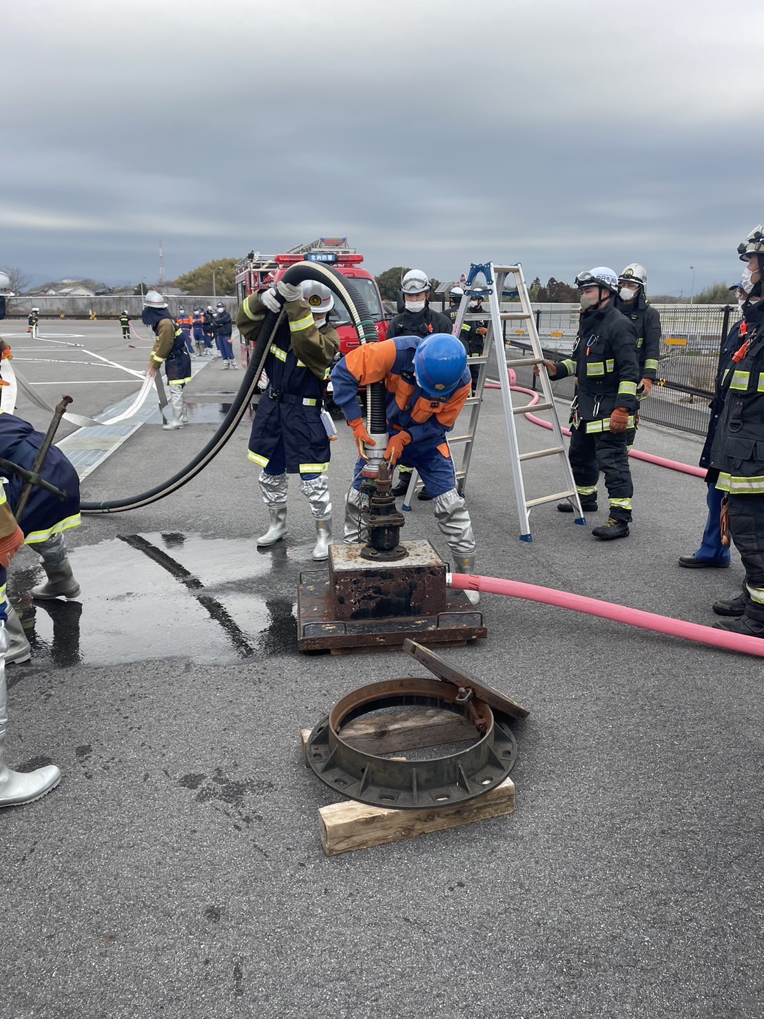 本日は四日市市北消防署北部分署にて北部分署、下野分団、保々分団、県分団での連携訓練に参加しました。