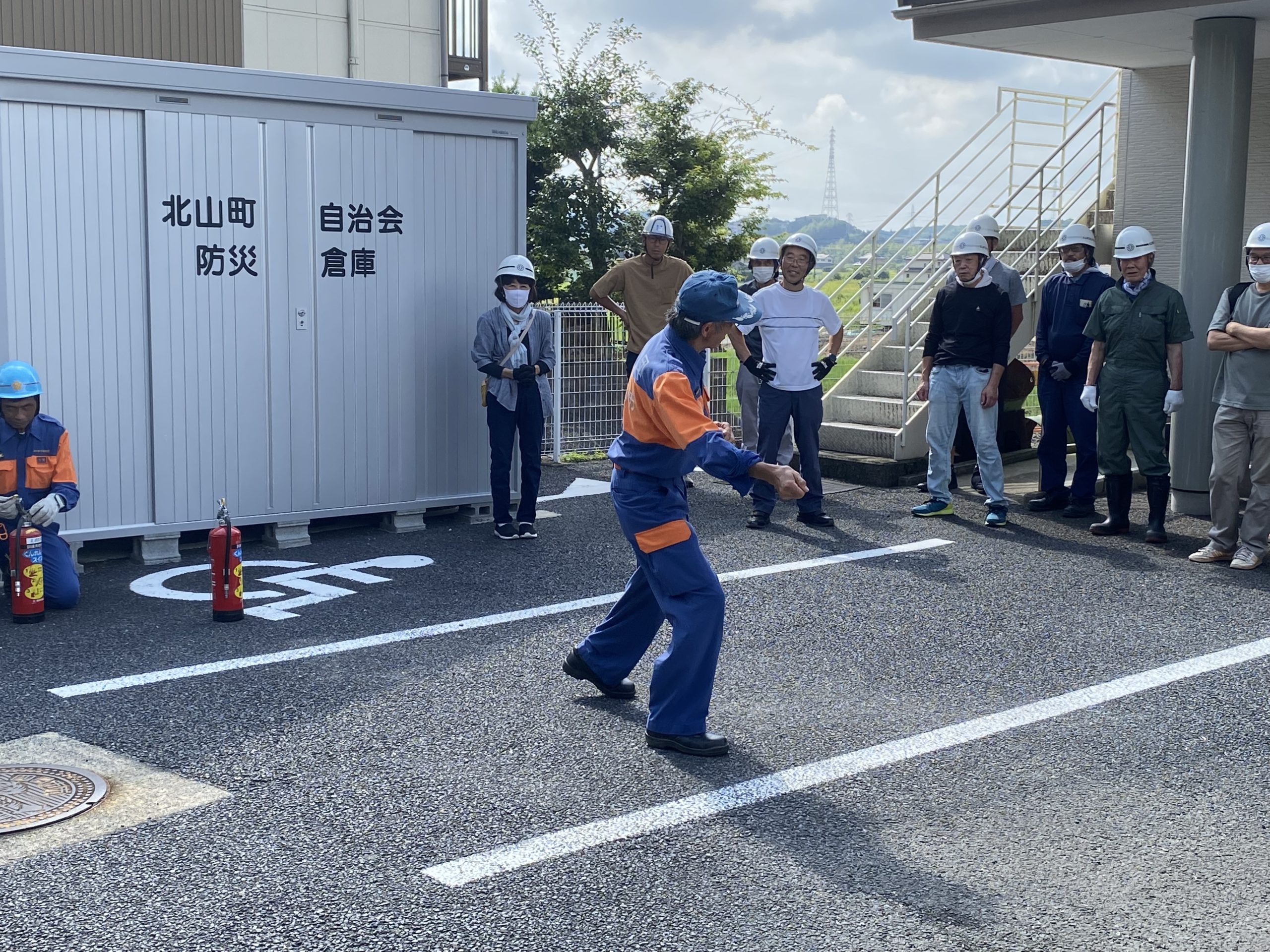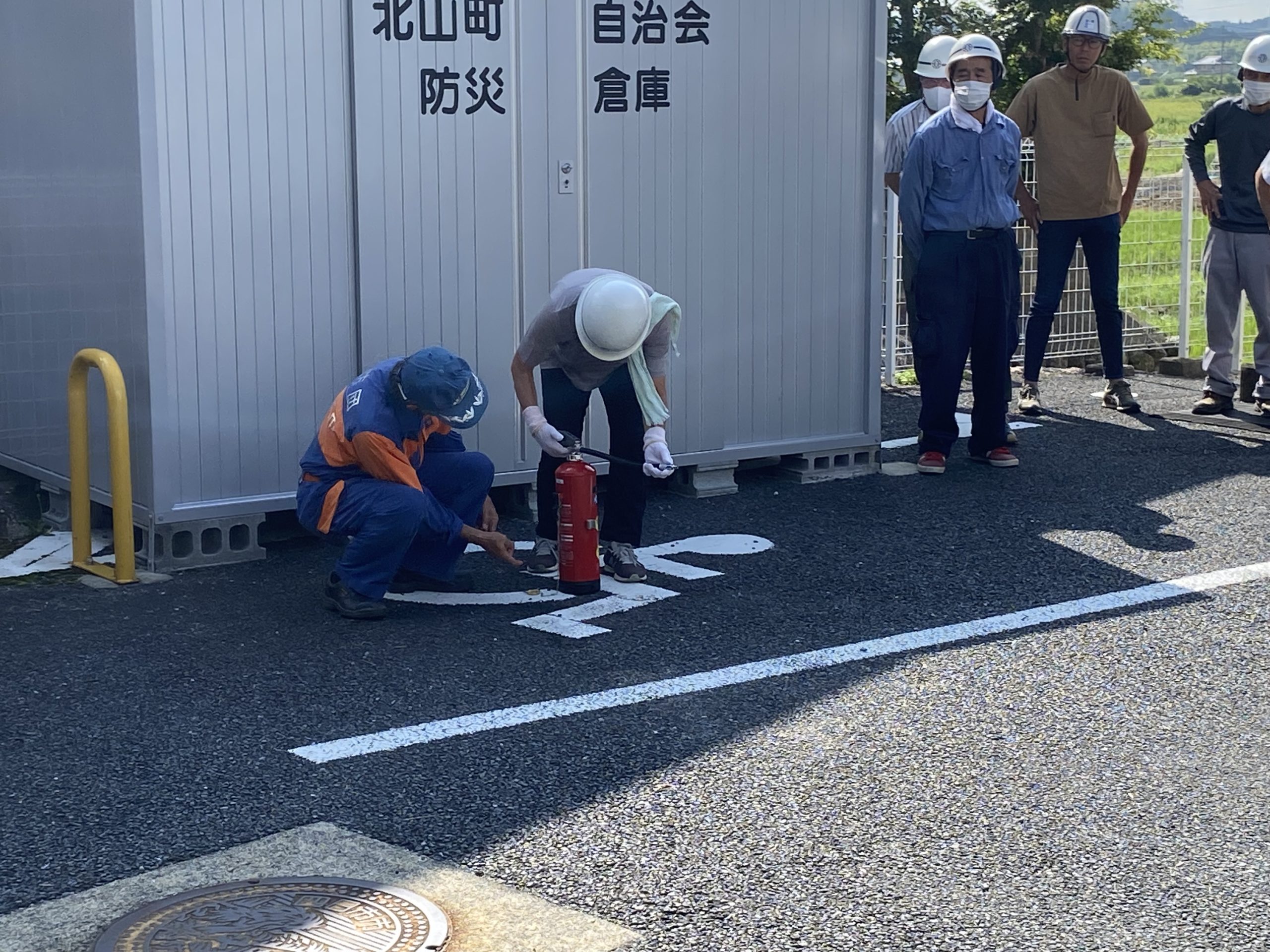 消火訓練の後は、北山町内にある全ての消火用ホース収納箱の中身の確認を行いました。