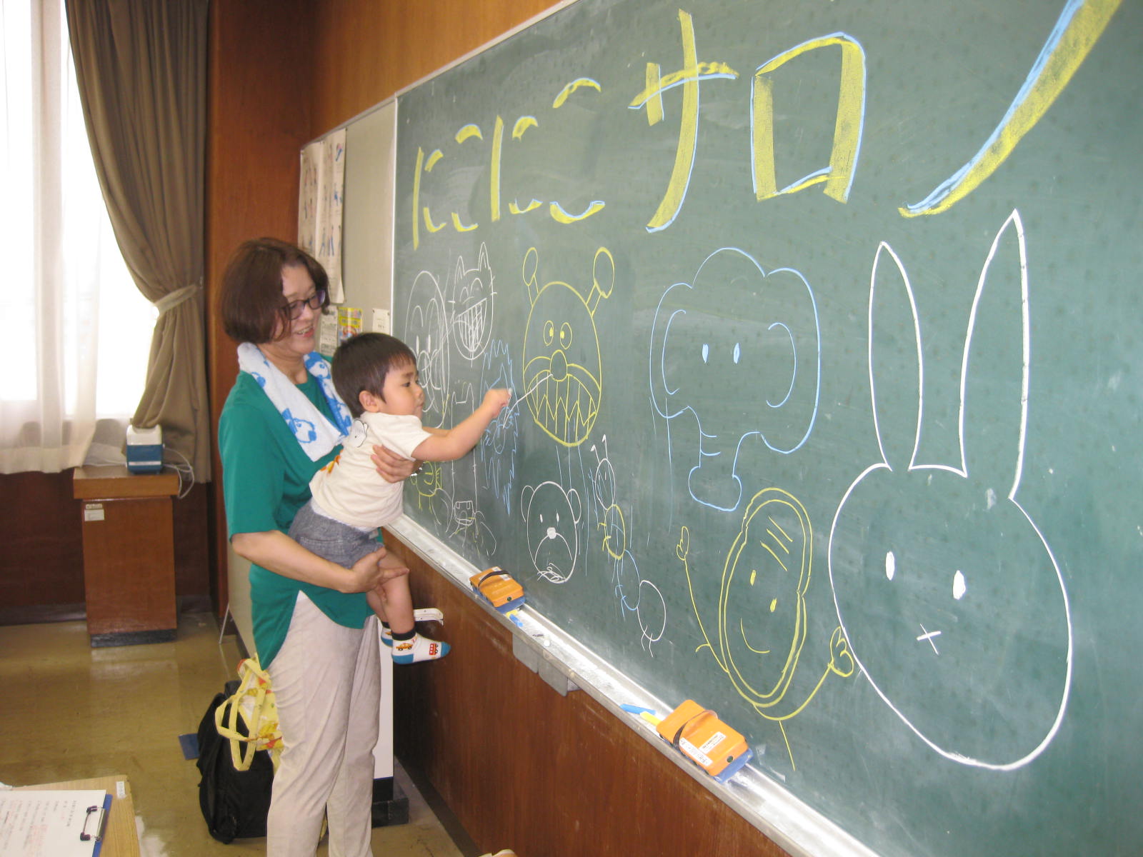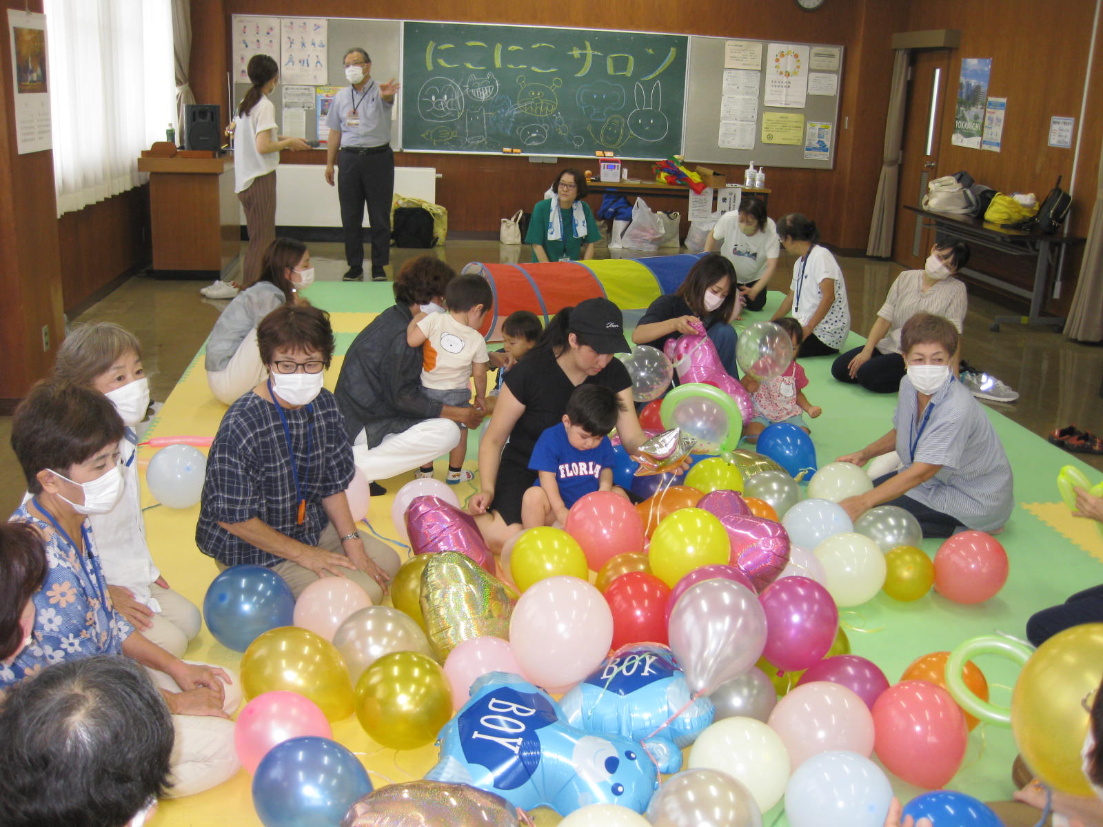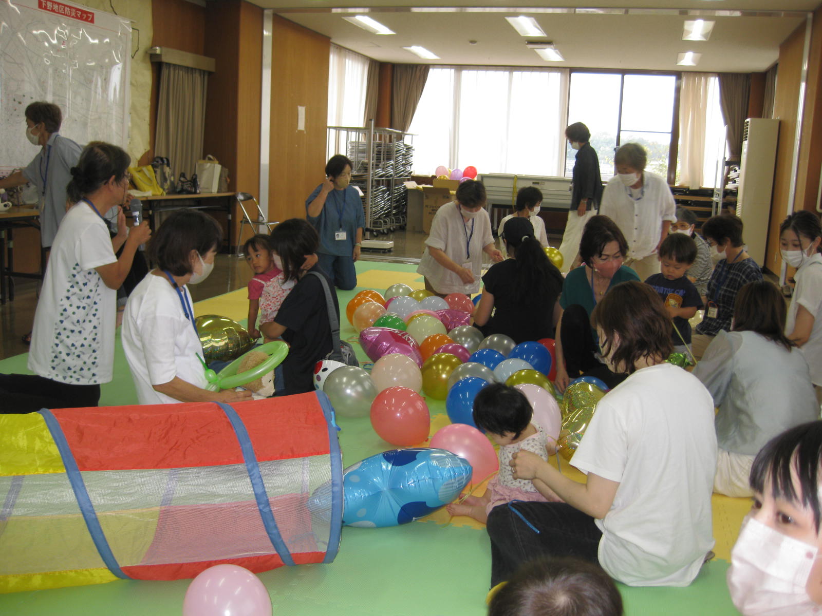 もう秋のお彼岸間近というのにまだ暑さが続く中、9月20日水曜日に下野市民センター2階で、0歳から6歳までの子を対象とした子育て支援事業”にこにこサロン”が開催されました。