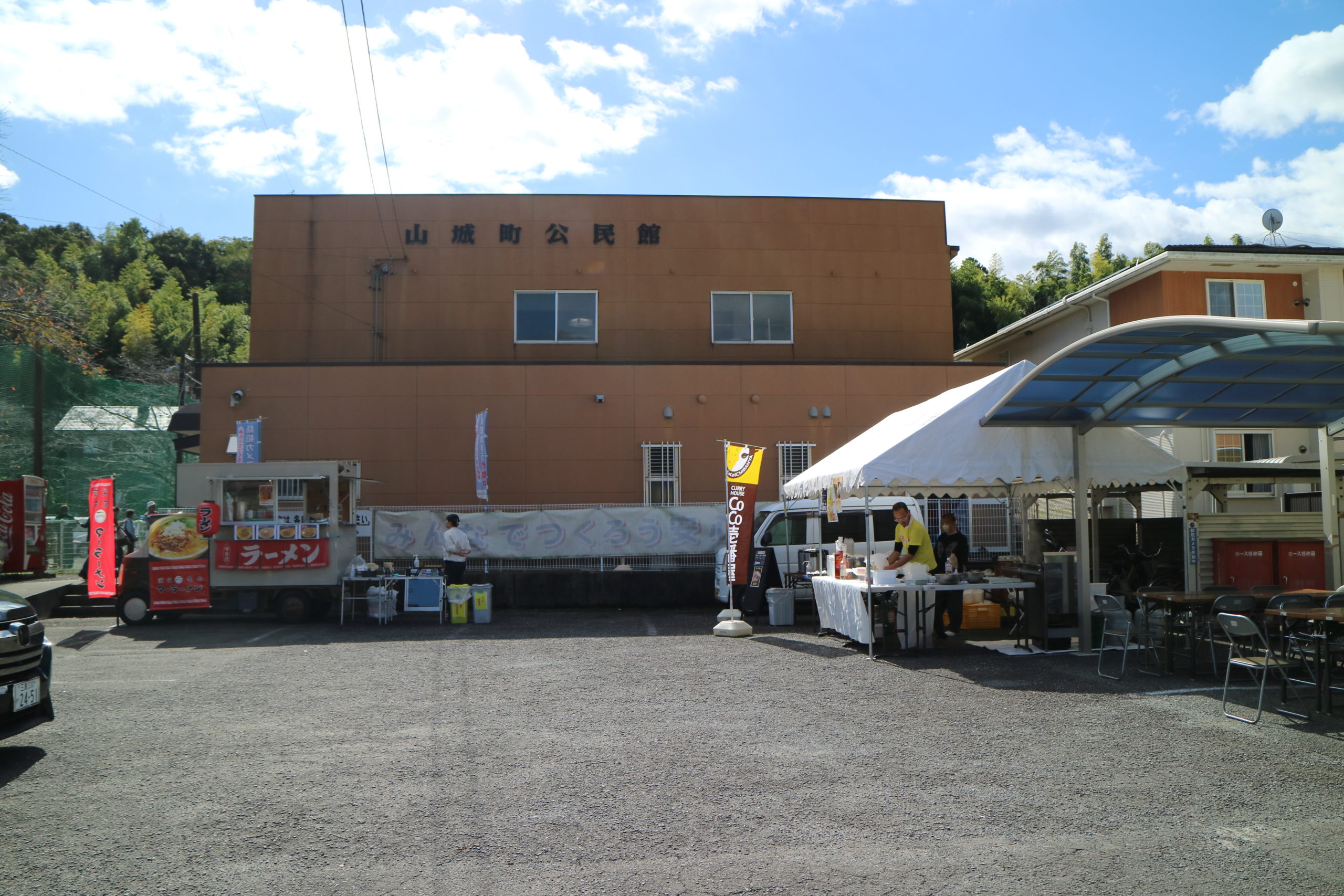 公民館駐車場にラーメンとカレーなどのキッチンカーに来ていただき