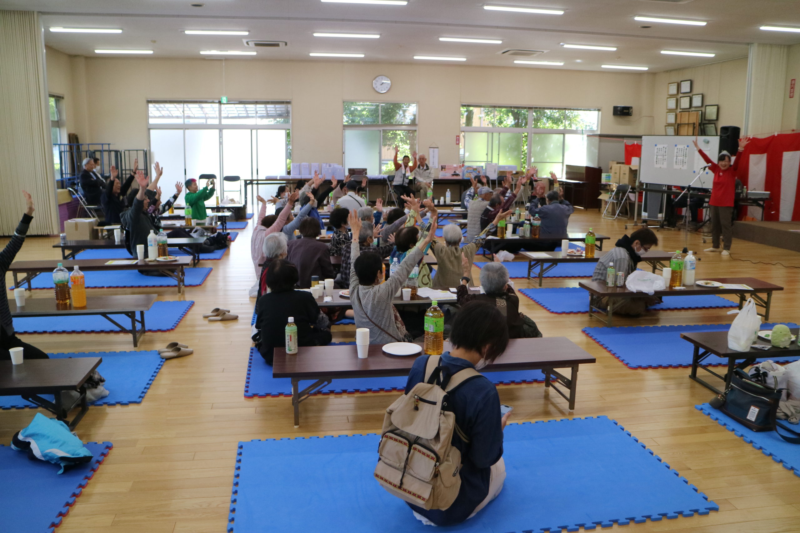 会場の皆さんで昼一の眠気と体をほぐしました。