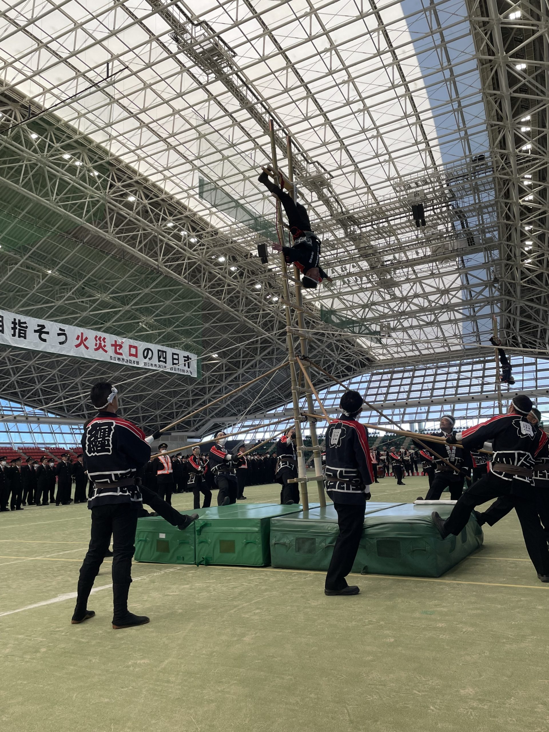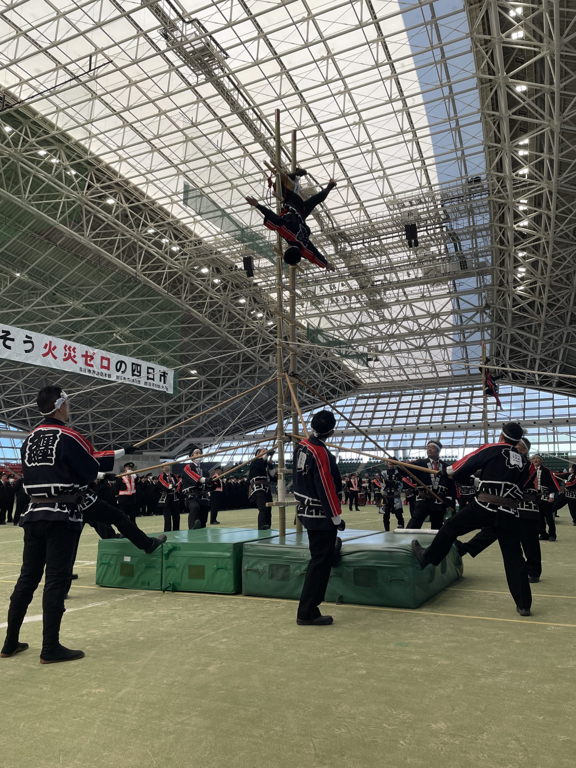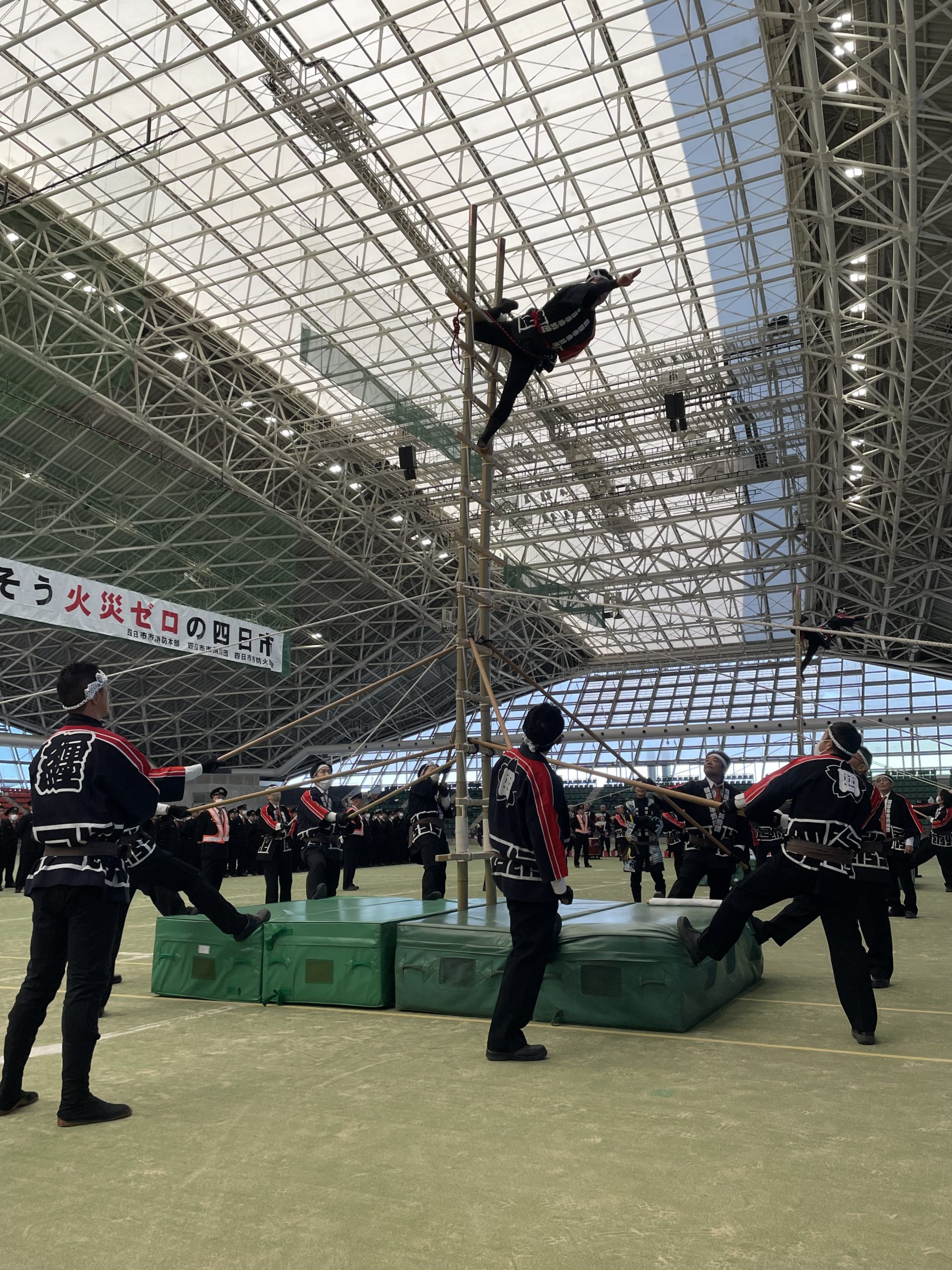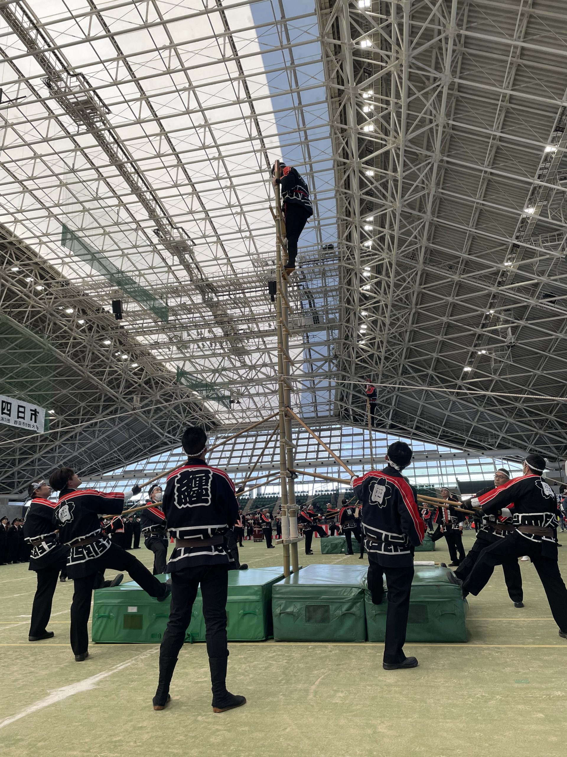 支えも梯子が傾かないように微調整を行い、乗り手をサポート。太鼓の演奏もとても迫力がありました。