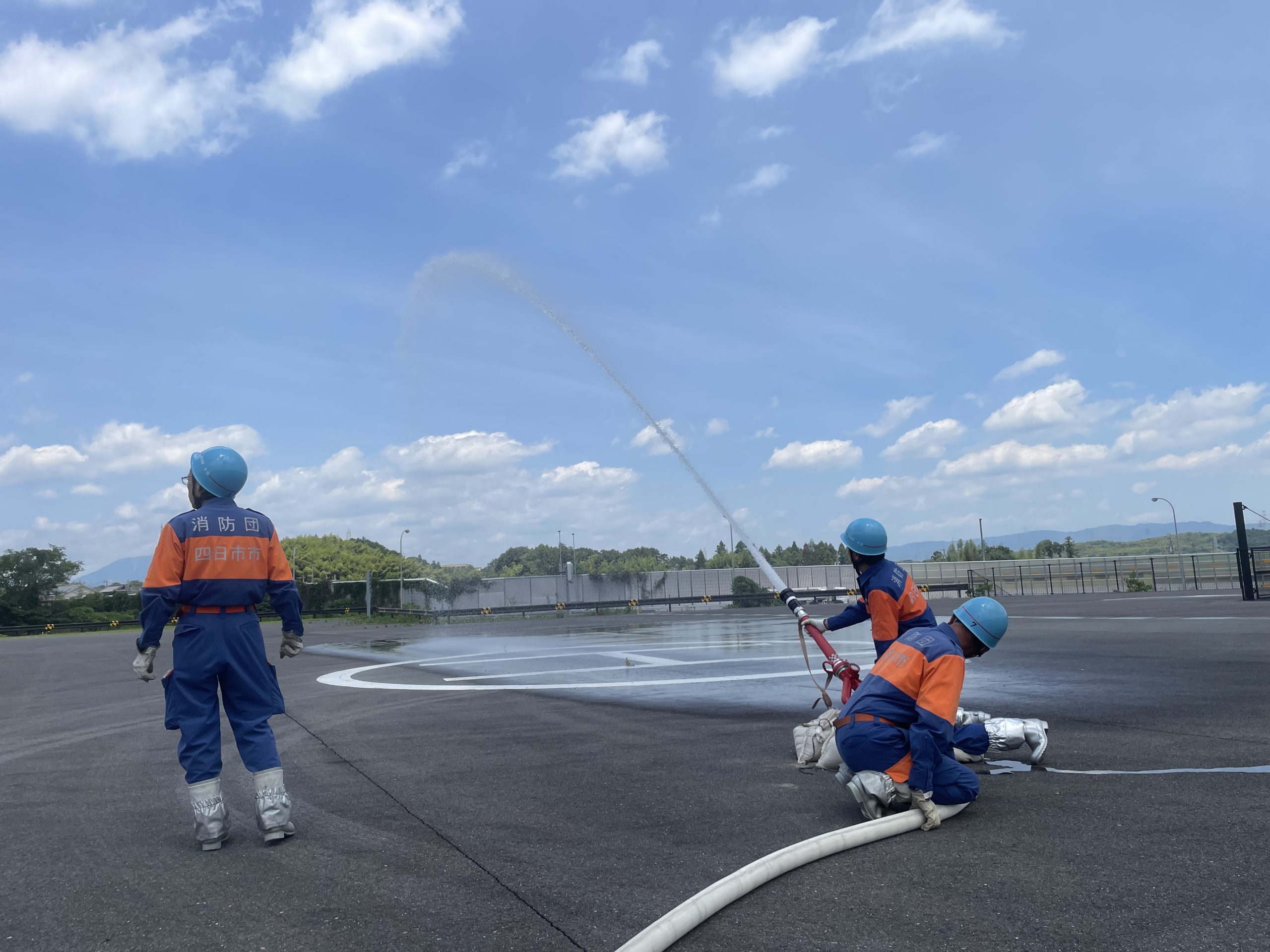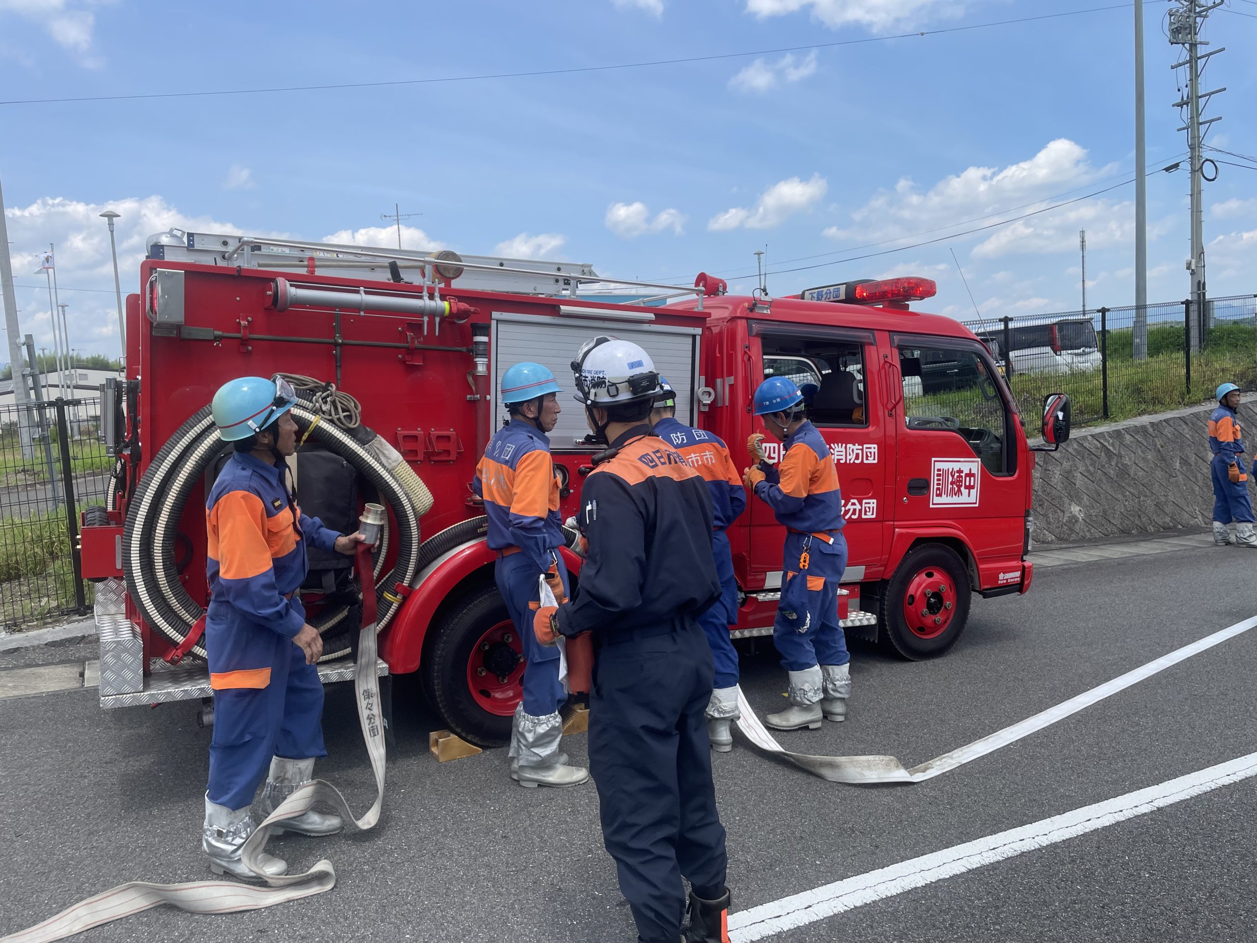 本日は消防操法競技大会プレ大会に続き、北部分署にて北ブロック7分団と北部分署職員による遠距離送水訓練に参加しました。