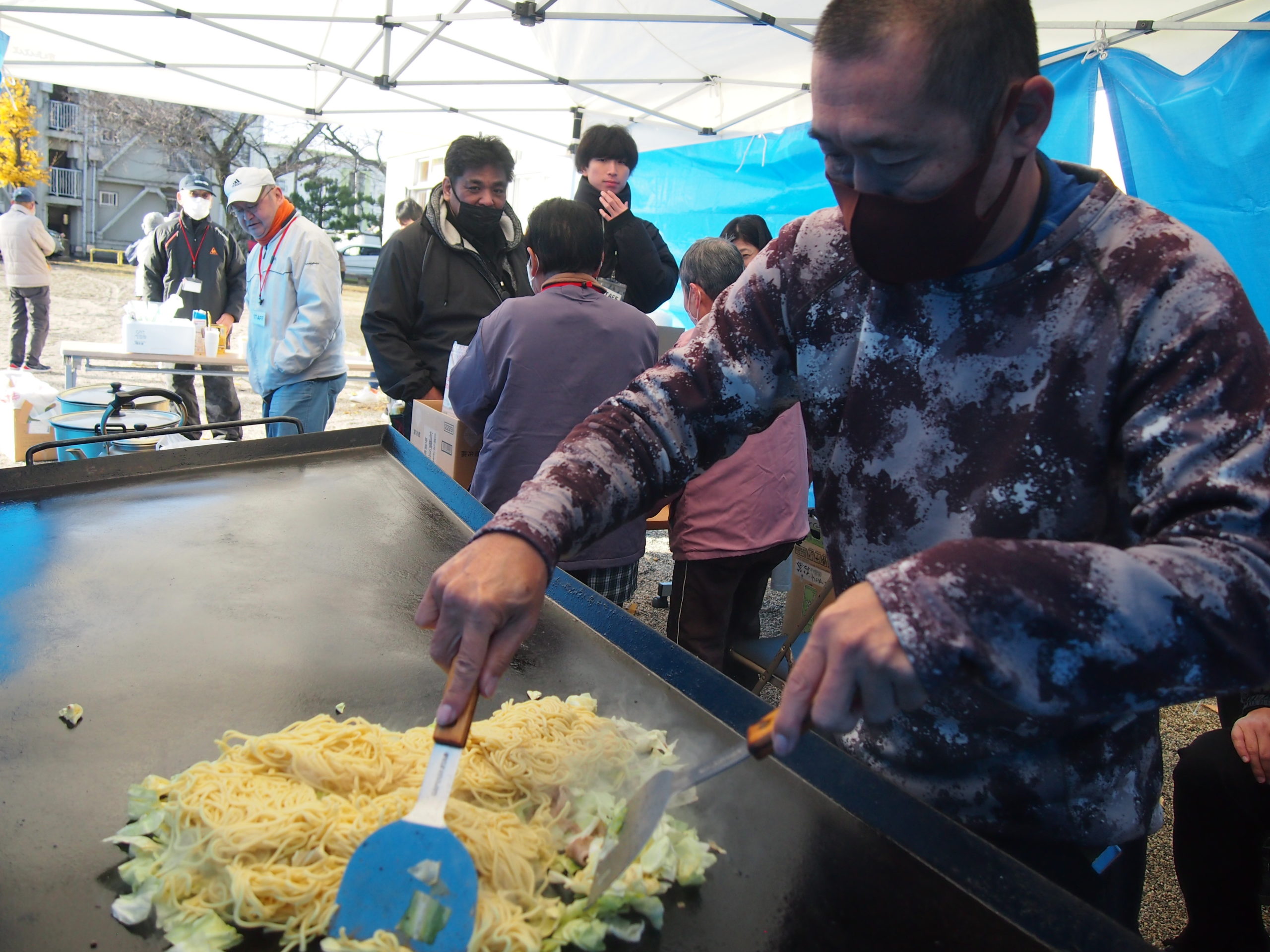 写真2)豚汁・焼きそば調理風景