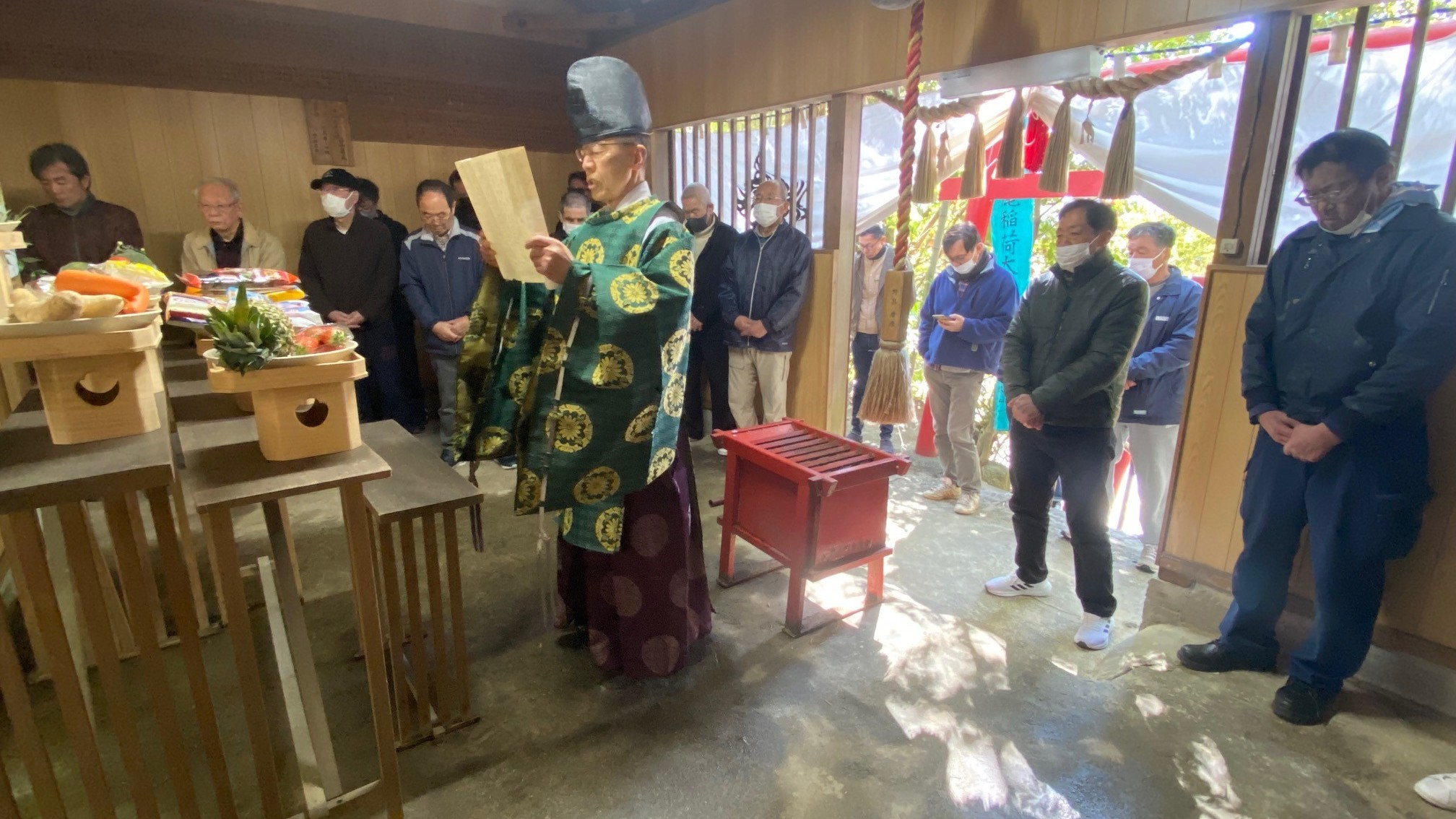 代表者が神主さんから玉串を受け取り神前に捧げました