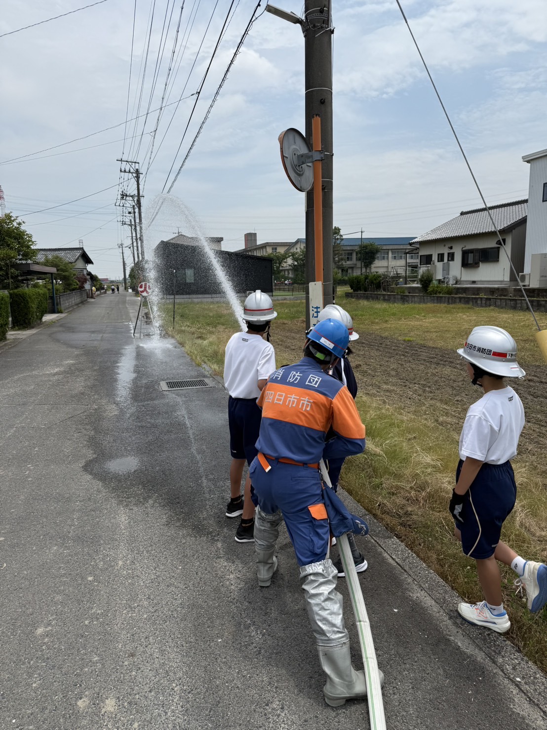 下野分団は放水体験を行う2年生を担当しました。