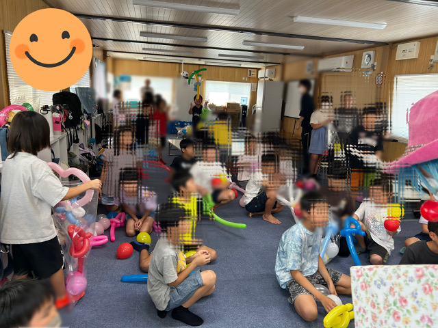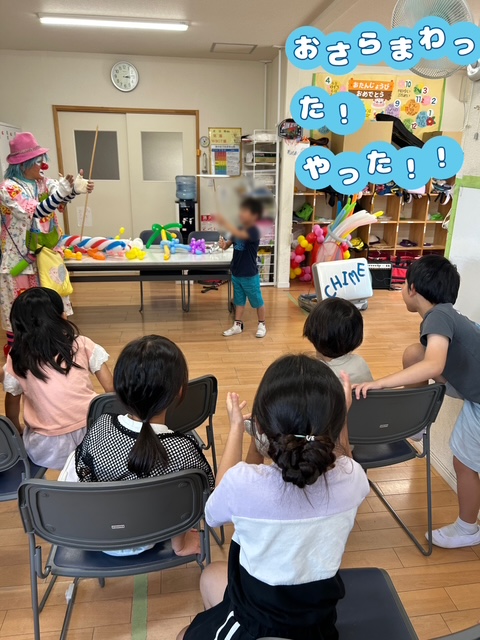 下野地区学童保育所 8月22日 バルーンアート(ピエロ)さんがやってきた ( ゚Д゚) 2025年8月28日 2025年8月28日 下野学童保育所 8月22日(金)第1学童・第2学童・第3学童に(ピエロ🤡)さんがやってきました。子どもたちおおよろこび、今から何が始まるのかきょうみしんしん、さてさてピエロさん何をつっくてくれるだろうか・・・・・・ 風船で、動物・はな・けん すごいぞ(*_*) バルーンアート以外にも、さらまわし・てじなもしていただき、楽しい一日をすごすことができ夏休みの思いでとなりました。 Post Views: 369 Facebook postはてブLINEPocketFeedly