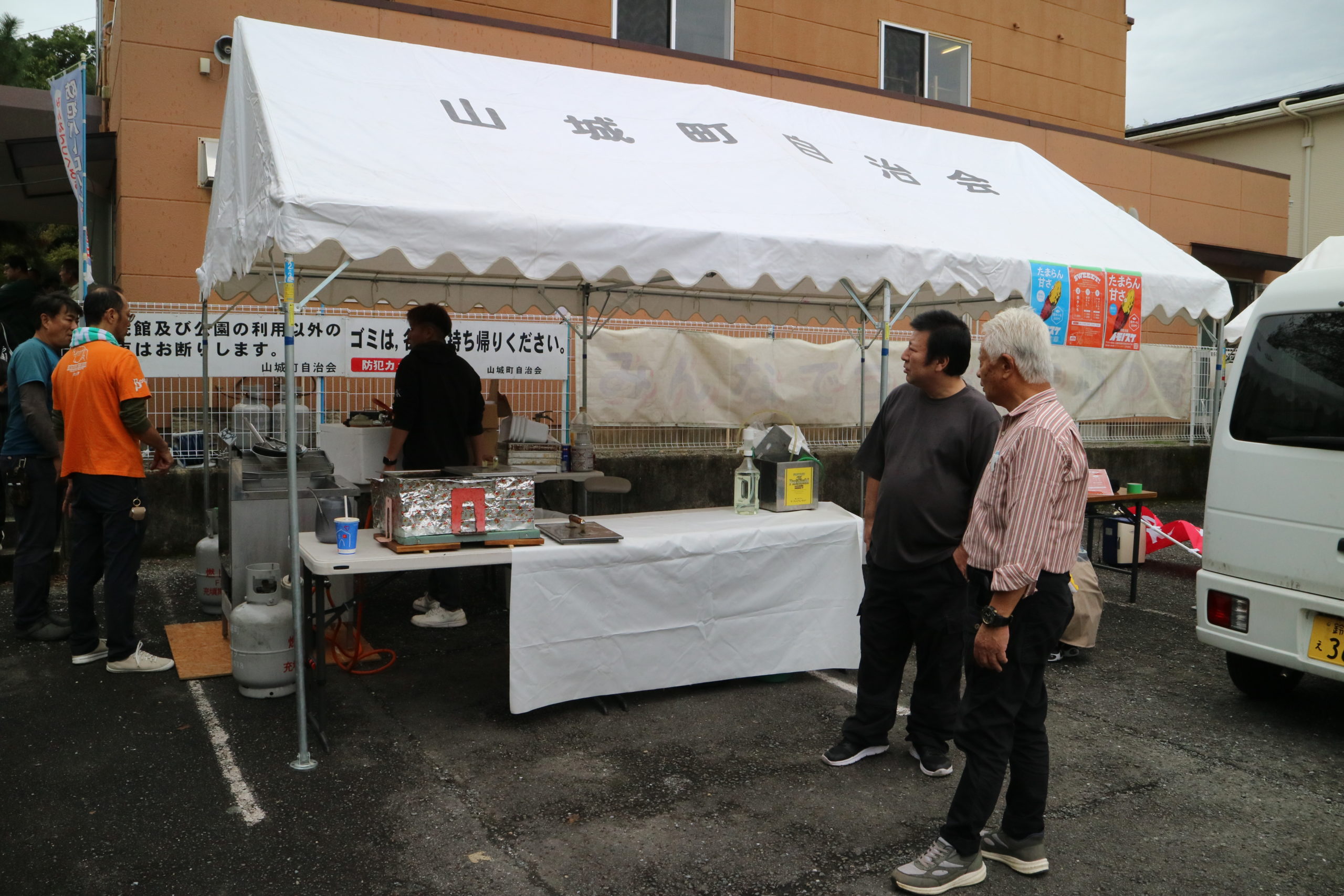 公民館の駐車場と桜公園に分かれて販売していました
