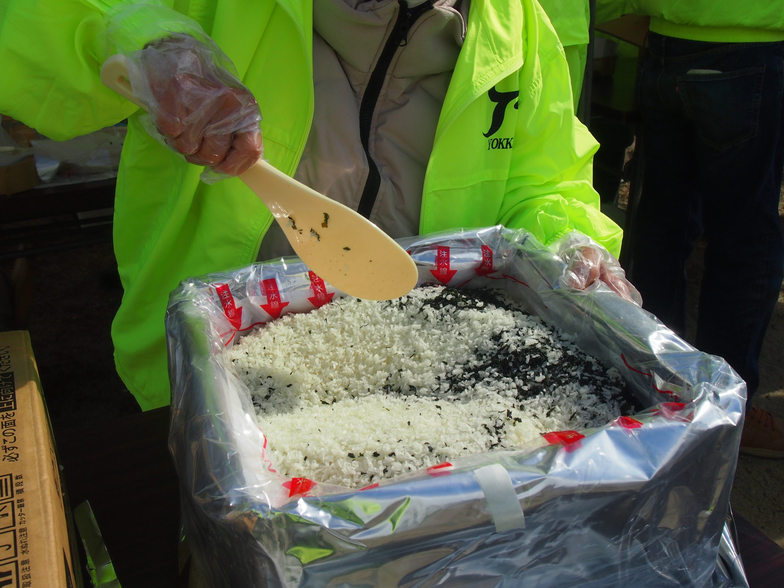 (5)飲食コーナーではアルファー米実演がありました