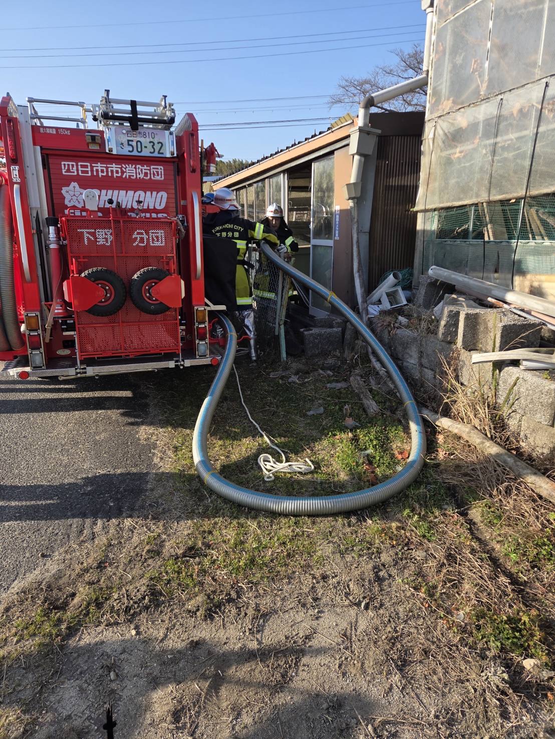 消防下野分団 一斉放水訓練 2026年1月19日 2026年1月19日 消防下野分団 令和8年1月18(日) 本日は岩田板金さんの倉庫と田んぼをお借りして放水訓練を行いました。 消防車より分岐媒介を使用して5戦での一斉放水を行いました。 1本の吸管からの揚水の為、放水量に対して給水量が追いつかず、放水圧が下がってしまいました。 地域のみなさまには、訓練中などご迷惑をかけています。今後も消防団活動へのご理解ご協力よろしくお願いいたします。 Post Views: 5 Facebook postはてブLINEPocketFeedly
